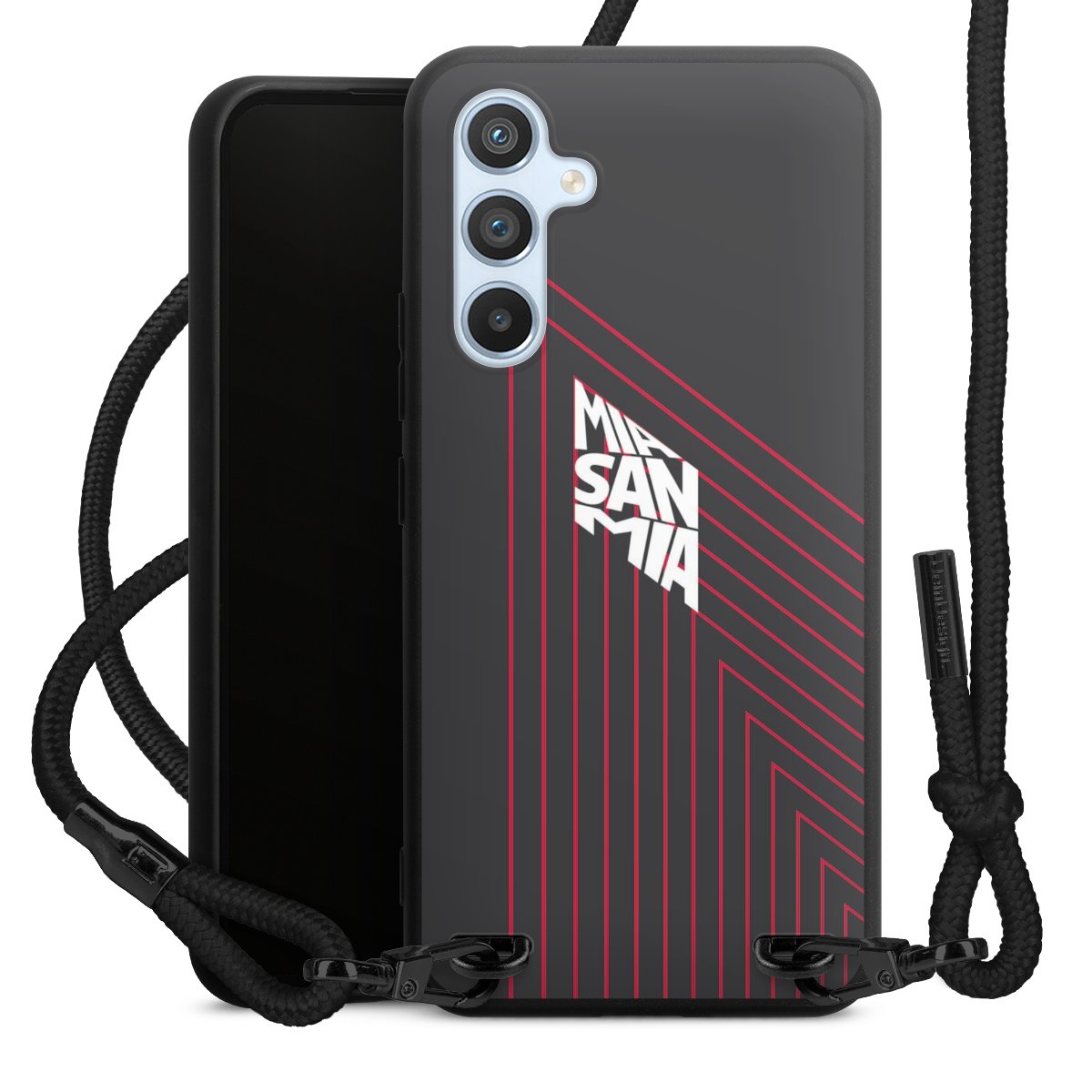 Pure Black: Phone case, fabric strap and metal details in stylish matt black.