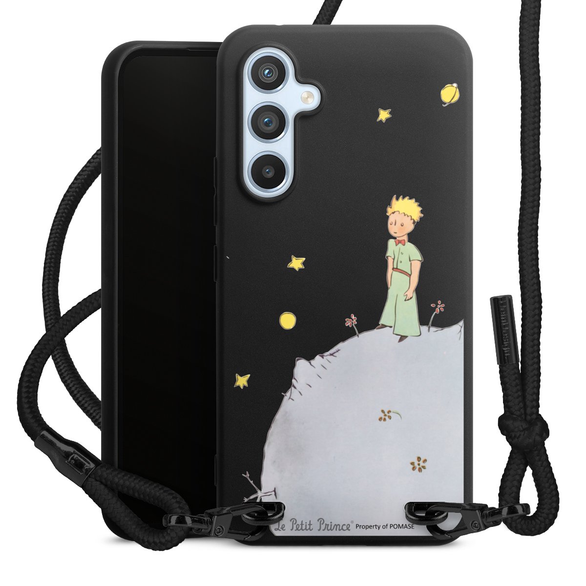 The matt black silicone case is made of flexible TPU (thermoplastic polyurethane) and offers robust protection. The durable, unbreakable material makes the cover flexible and dimensionally stable at the same time. The matte surface makes your design stand out more and is less susceptible to fingerprints and dirt. The stylish trend accessory fits comfortably in the hand and is perfectly complemented by the fabric (polyester) mobile phone strap. The braided fabric strap is approx. 1.70 metres long with a diameter of approx. 0.5 cm. Due to the special knotting technique, the length of the strap can be adjusted by simply pulling it, so that you can adapt it individually to your wishes. The practical case to wear around your neck is available with the fabric strap in black. As a little icing on the cake, we have provided the strap with a chic metal fastener in matt black. The strap is securely fastened to the case with loops made of high-quality genuine leather and press studs. The ends of the fabric strap are covered with metallic end caps and thus protected from fraying.