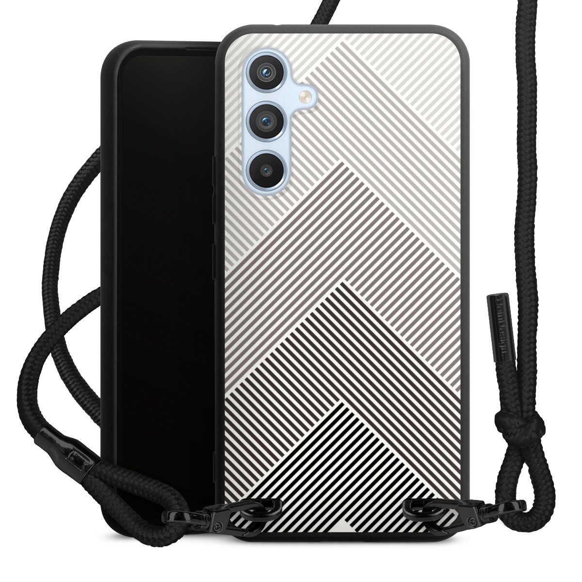 Pure Black: Phone case, fabric strap and metal details in stylish matt black.