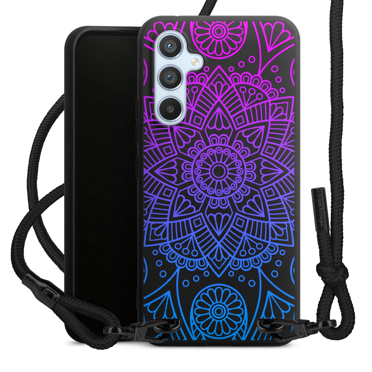 The matt black silicone case is made of flexible TPU (thermoplastic polyurethane) and offers robust protection. The durable, unbreakable material makes the cover flexible and dimensionally stable at the same time. The matte surface makes your design stand out more and is less susceptible to fingerprints and dirt. The stylish trend accessory fits comfortably in the hand and is perfectly complemented by the fabric (polyester) mobile phone strap. The braided fabric strap is approx. 1.70 metres long with a diameter of approx. 0.5 cm. Due to the special knotting technique, the length of the strap can be adjusted by simply pulling it, so that you can adapt it individually to your wishes. The practical case to wear around your neck is available with the fabric strap in black. As a little icing on the cake, we have provided the strap with a chic metal fastener in matt black. The strap is securely fastened to the case with loops made of high-quality genuine leather and press studs. The ends of the fabric strap are covered with metallic end caps and thus protected from fraying.