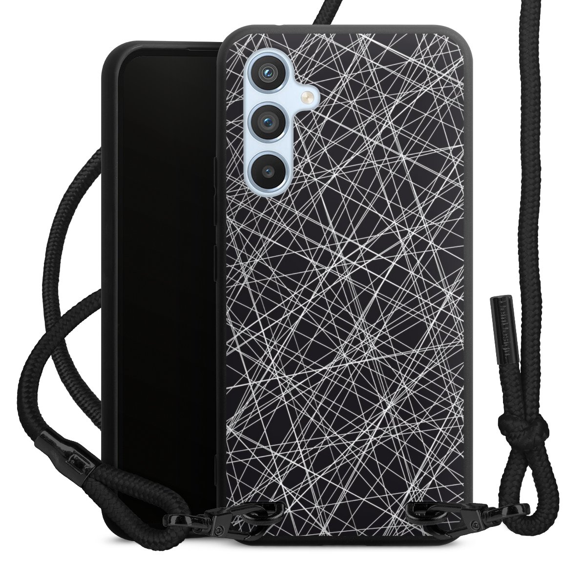Pure Black: Phone case, fabric strap and metal details in stylish matt black.