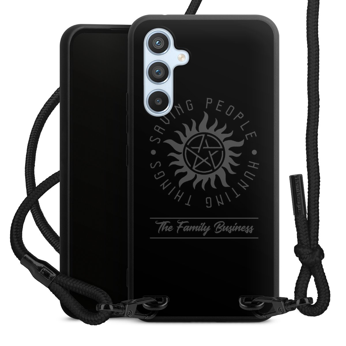 The matt black silicone case is made of flexible TPU (thermoplastic polyurethane) and offers robust protection. The durable, unbreakable material makes the cover flexible and dimensionally stable at the same time. The matte surface makes your design stand out more and is less susceptible to fingerprints and dirt. The stylish trend accessory fits comfortably in the hand and is perfectly complemented by the fabric (polyester) mobile phone strap. The braided fabric strap is approx. 1.70 metres long with a diameter of approx. 0.5 cm. Due to the special knotting technique, the length of the strap can be adjusted by simply pulling it, so that you can adapt it individually to your wishes. The practical case to wear around your neck is available with the fabric strap in black. As a little icing on the cake, we have provided the strap with a chic metal fastener in matt black. The strap is securely fastened to the case with loops made of high-quality genuine leather and press studs. The ends of the fabric strap are covered with metallic end caps and thus protected from fraying.