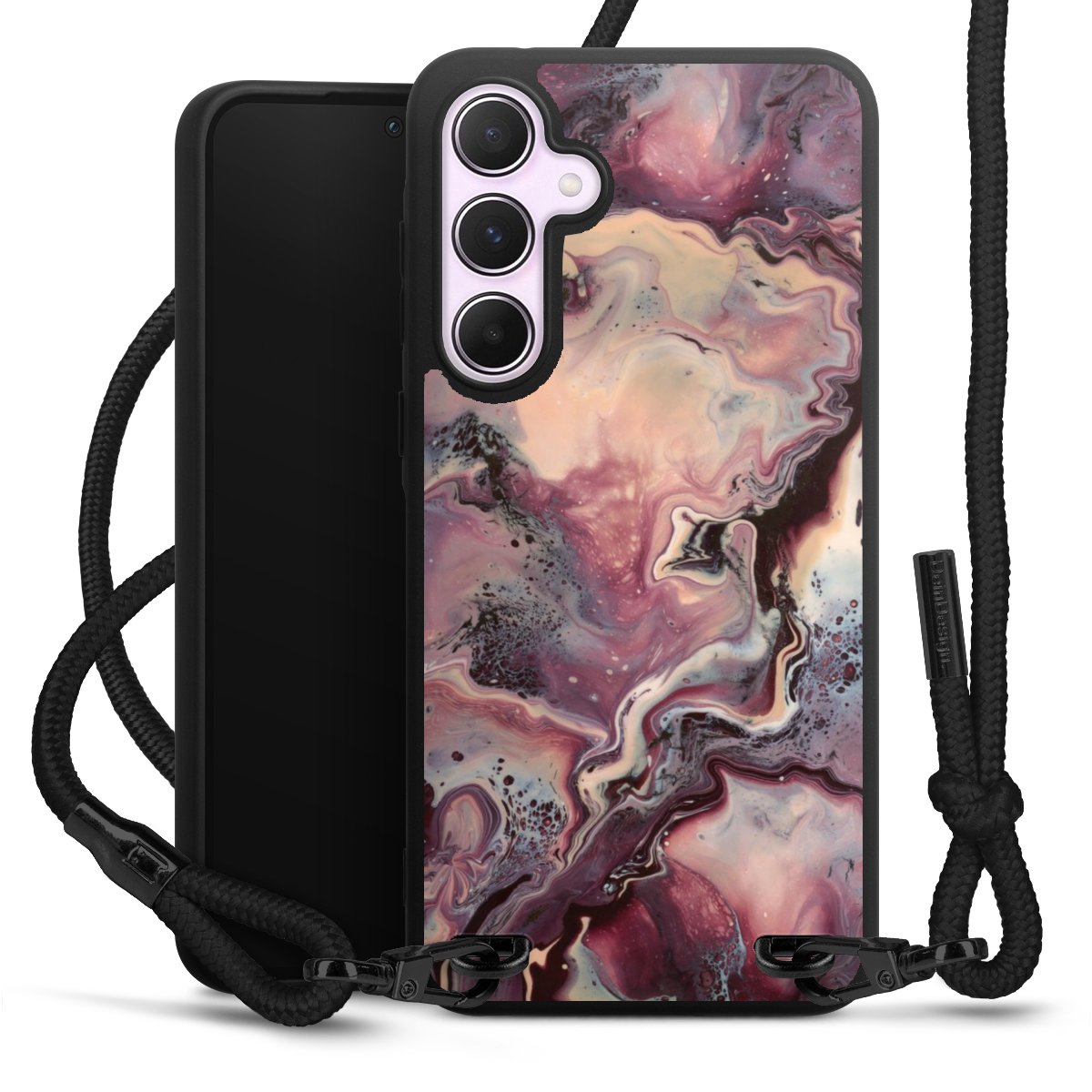 We use the solid direct print process for this phone case, which is why the print area only covers the back and the edge remains unprinted. The case to wear around your neck can be ordered unprinted, fully printed, or partially printed. For your design, either choose one of our exclusive shop motifs or get creative and create your own design, for example with photos and overlays. Design your own personal trend accessory and make an individual statement on the streets!