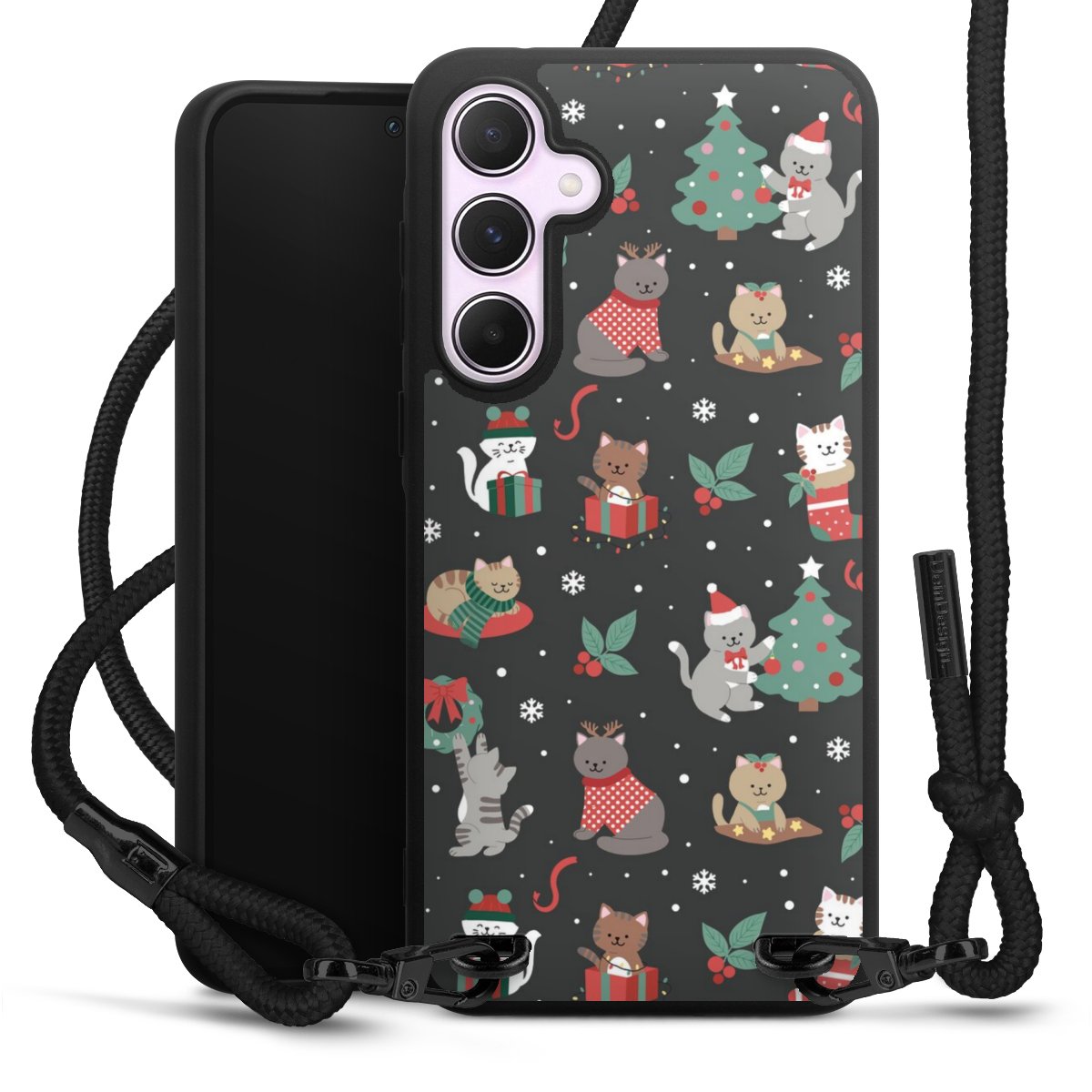 The matt black silicone case is made of flexible TPU (thermoplastic polyurethane) and offers robust protection. The durable, unbreakable material makes the cover flexible and dimensionally stable at the same time. The matte surface makes your design stand out more and is less susceptible to fingerprints and dirt. The stylish trend accessory fits comfortably in the hand and is perfectly complemented by the fabric (polyester) mobile phone strap. The braided fabric strap is approx. 1.70 metres long with a diameter of approx. 0.5 cm. Due to the special knotting technique, the length of the strap can be adjusted by simply pulling it, so that you can adapt it individually to your wishes. The practical case to wear around your neck is available with the fabric strap in black. As a little icing on the cake, we have provided the strap with a chic metal fastener in matt black. The strap is securely fastened to the case with loops made of high-quality genuine leather and press studs. The ends of the fabric strap are covered with metallic end caps and thus protected from fraying.
