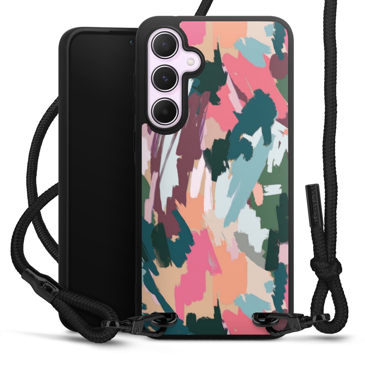 We use the solid direct print process for this phone case, which is why the print area only covers the back and the edge remains unprinted. The case to wear around your neck can be ordered unprinted, fully printed, or partially printed. For your design, either choose one of our exclusive shop motifs or get creative and create your own design, for example with photos and overlays. Design your own personal trend accessory and make an individual statement on the streets!