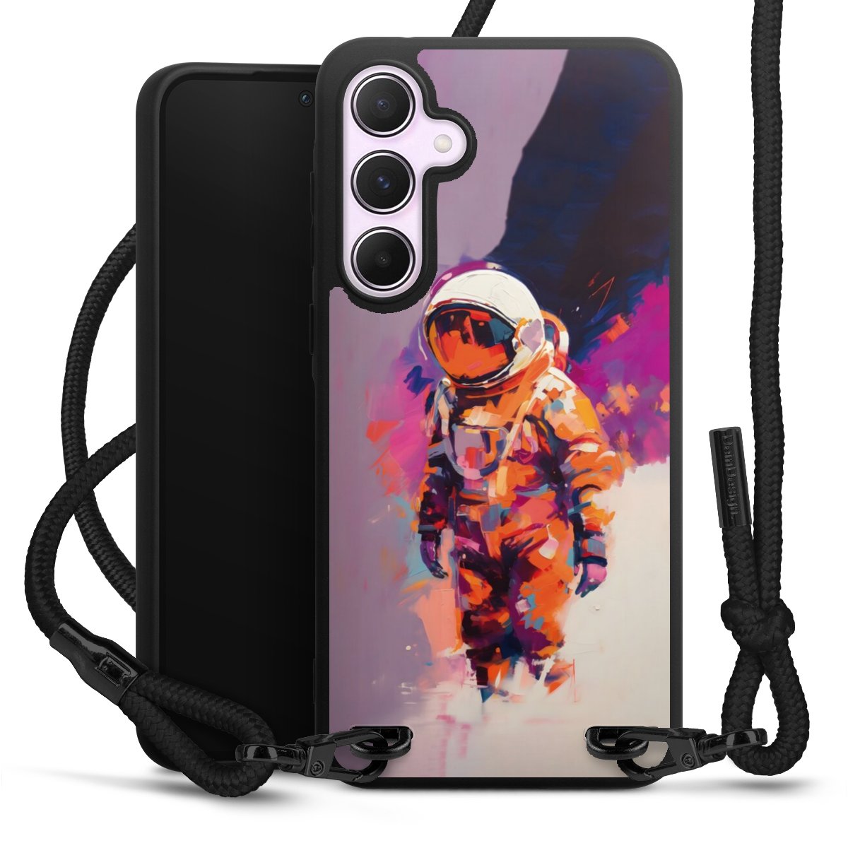We use the solid direct print process for this phone case, which is why the print area only covers the back and the edge remains unprinted. The case to wear around your neck can be ordered unprinted, fully printed, or partially printed. For your design, either choose one of our exclusive shop motifs or get creative and create your own design, for example with photos and overlays. Design your own personal trend accessory and make an individual statement on the streets!
