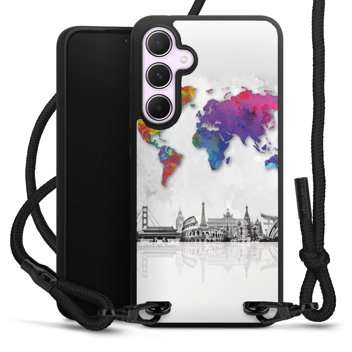 We use the solid direct print process for this phone case, which is why the print area only covers the back and the edge remains unprinted. The case to wear around your neck can be ordered unprinted, fully printed, or partially printed. For your design, either choose one of our exclusive shop motifs or get creative and create your own design, for example with photos and overlays. Design your own personal trend accessory and make an individual statement on the streets!