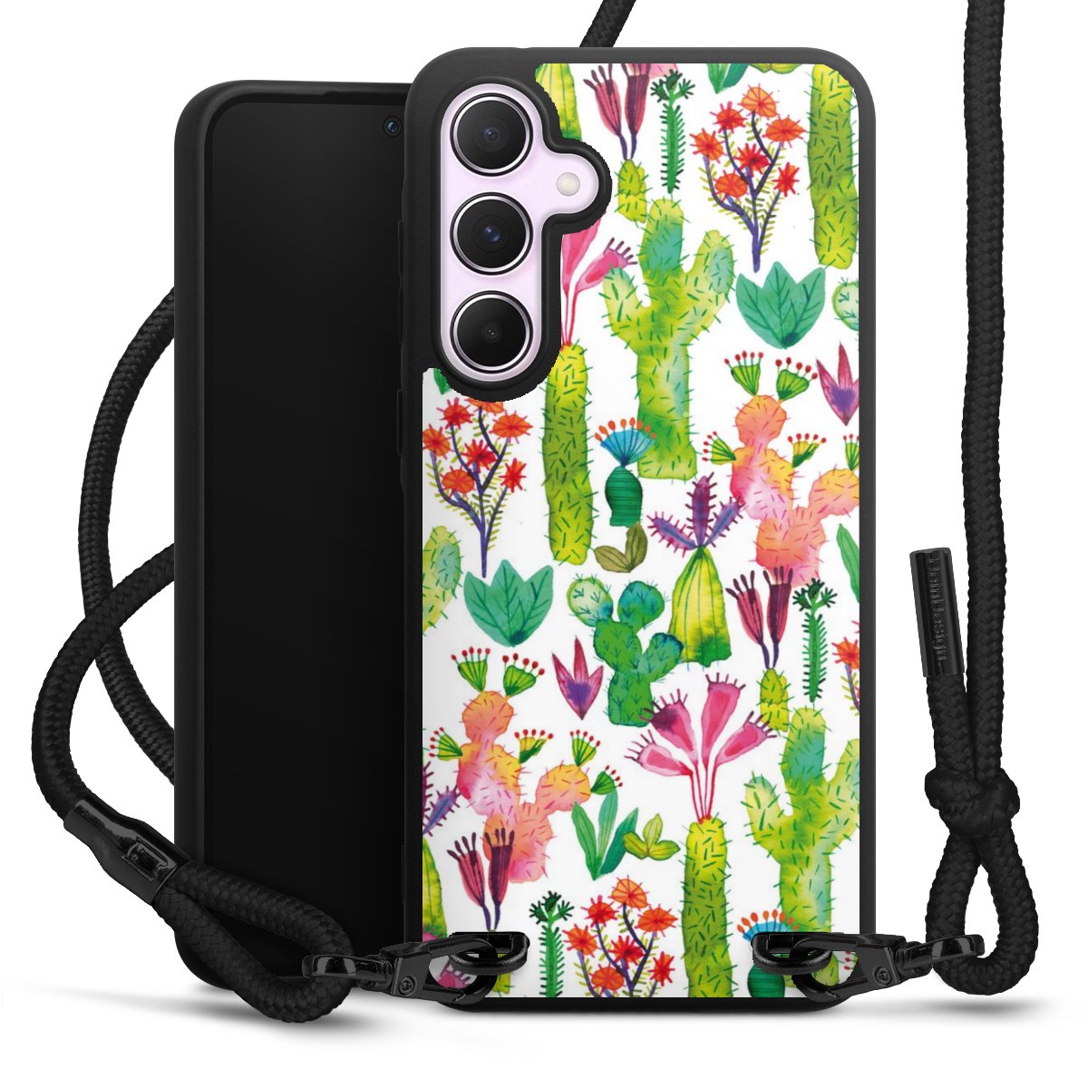 We use the solid direct print process for this phone case, which is why the print area only covers the back and the edge remains unprinted. The case to wear around your neck can be ordered unprinted, fully printed, or partially printed. For your design, either choose one of our exclusive shop motifs or get creative and create your own design, for example with photos and overlays. Design your own personal trend accessory and make an individual statement on the streets!