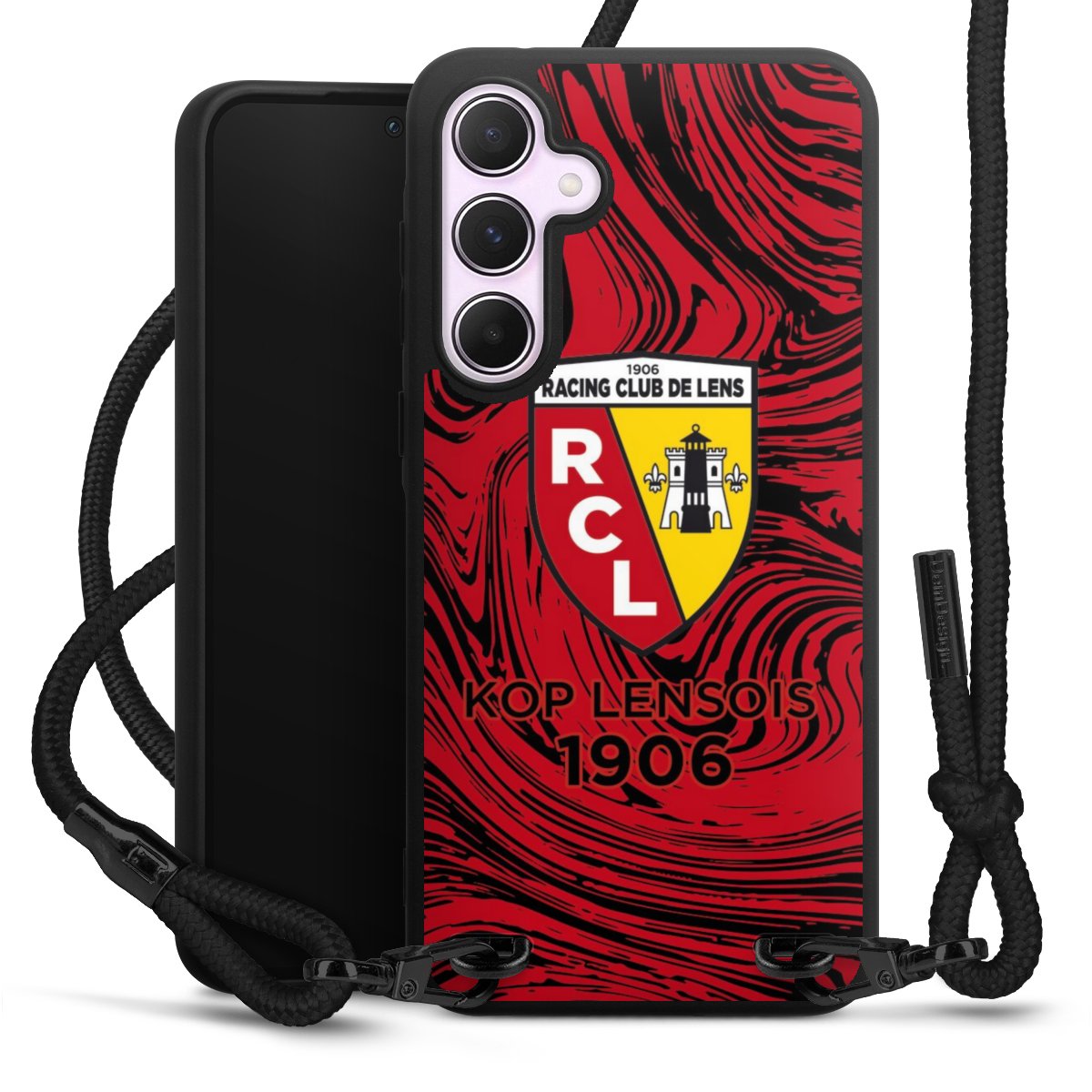 The matt black silicone case is made of flexible TPU (thermoplastic polyurethane) and offers robust protection. The durable, unbreakable material makes the cover flexible and dimensionally stable at the same time. The matte surface makes your design stand out more and is less susceptible to fingerprints and dirt. The stylish trend accessory fits comfortably in the hand and is perfectly complemented by the fabric (polyester) mobile phone strap. The braided fabric strap is approx. 1.70 metres long with a diameter of approx. 0.5 cm. Due to the special knotting technique, the length of the strap can be adjusted by simply pulling it, so that you can adapt it individually to your wishes. The practical case to wear around your neck is available with the fabric strap in black. As a little icing on the cake, we have provided the strap with a chic metal fastener in matt black. The strap is securely fastened to the case with loops made of high-quality genuine leather and press studs. The ends of the fabric strap are covered with metallic end caps and thus protected from fraying.