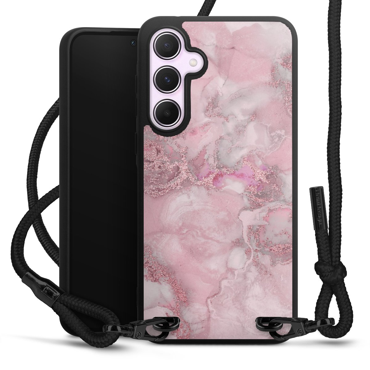 The matt black silicone case is made of flexible TPU (thermoplastic polyurethane) and offers robust protection. The durable, unbreakable material makes the cover flexible and dimensionally stable at the same time. The matte surface makes your design stand out more and is less susceptible to fingerprints and dirt. The stylish trend accessory fits comfortably in the hand and is perfectly complemented by the fabric (polyester) mobile phone strap. The braided fabric strap is approx. 1.70 metres long with a diameter of approx. 0.5 cm. Due to the special knotting technique, the length of the strap can be adjusted by simply pulling it, so that you can adapt it individually to your wishes. The practical case to wear around your neck is available with the fabric strap in black. As a little icing on the cake, we have provided the strap with a chic metal fastener in matt black. The strap is securely fastened to the case with loops made of high-quality genuine leather and press studs. The ends of the fabric strap are covered with metallic end caps and thus protected from fraying.