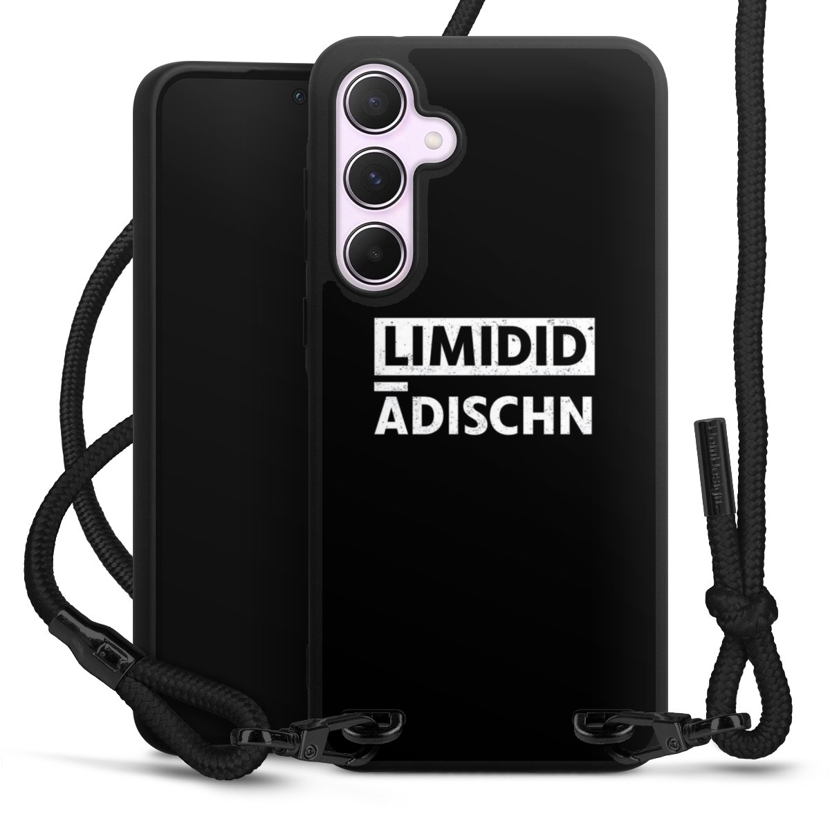 The matt black silicone case is made of flexible TPU (thermoplastic polyurethane) and offers robust protection. The durable, unbreakable material makes the cover flexible and dimensionally stable at the same time. The matte surface makes your design stand out more and is less susceptible to fingerprints and dirt. The stylish trend accessory fits comfortably in the hand and is perfectly complemented by the fabric (polyester) mobile phone strap. The braided fabric strap is approx. 1.70 metres long with a diameter of approx. 0.5 cm. Due to the special knotting technique, the length of the strap can be adjusted by simply pulling it, so that you can adapt it individually to your wishes. The practical case to wear around your neck is available with the fabric strap in black. As a little icing on the cake, we have provided the strap with a chic metal fastener in matt black. The strap is securely fastened to the case with loops made of high-quality genuine leather and press studs. The ends of the fabric strap are covered with metallic end caps and thus protected from fraying.
