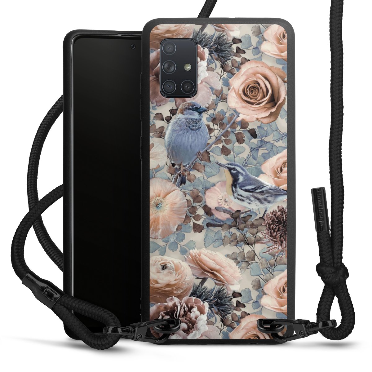 The matt black silicone case is made of flexible TPU (thermoplastic polyurethane) and offers robust protection. The durable, unbreakable material makes the cover flexible and dimensionally stable at the same time. The matte surface makes your design stand out more and is less susceptible to fingerprints and dirt. The stylish trend accessory fits comfortably in the hand and is perfectly complemented by the fabric (polyester) mobile phone strap. The braided fabric strap is approx. 1.70 metres long with a diameter of approx. 0.5 cm. Due to the special knotting technique, the length of the strap can be adjusted by simply pulling it, so that you can adapt it individually to your wishes. The practical case to wear around your neck is available with the fabric strap in black. As a little icing on the cake, we have provided the strap with a chic metal fastener in matt black. The strap is securely fastened to the case with loops made of high-quality genuine leather and press studs. The ends of the fabric strap are covered with metallic end caps and thus protected from fraying.