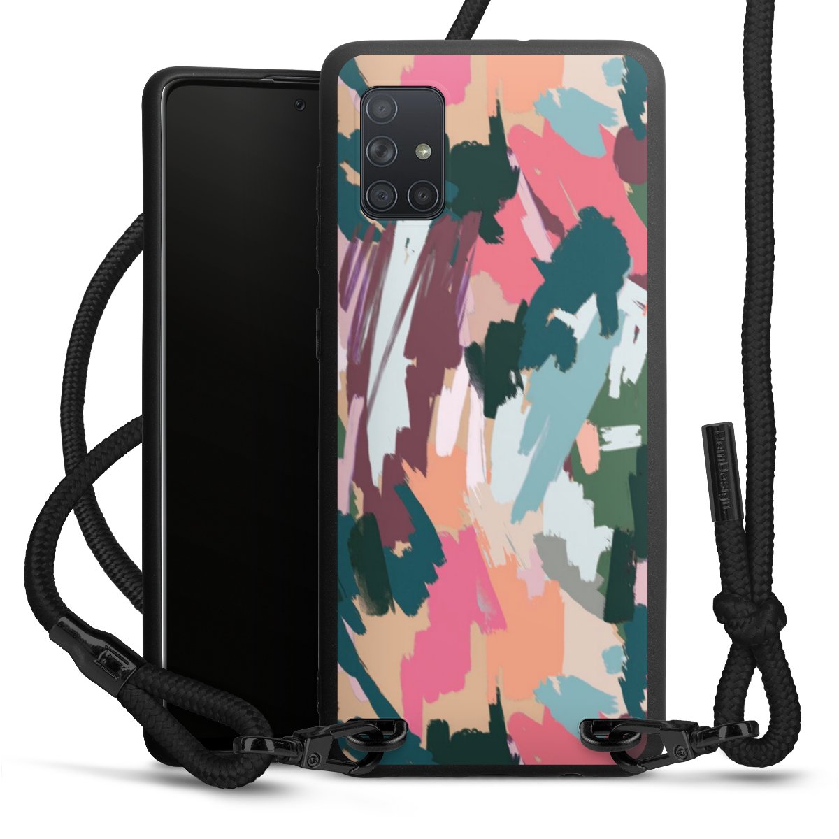We use the solid direct print process for this phone case, which is why the print area only covers the back and the edge remains unprinted. The case to wear around your neck can be ordered unprinted, fully printed, or partially printed. For your design, either choose one of our exclusive shop motifs or get creative and create your own design, for example with photos and overlays. Design your own personal trend accessory and make an individual statement on the streets!
