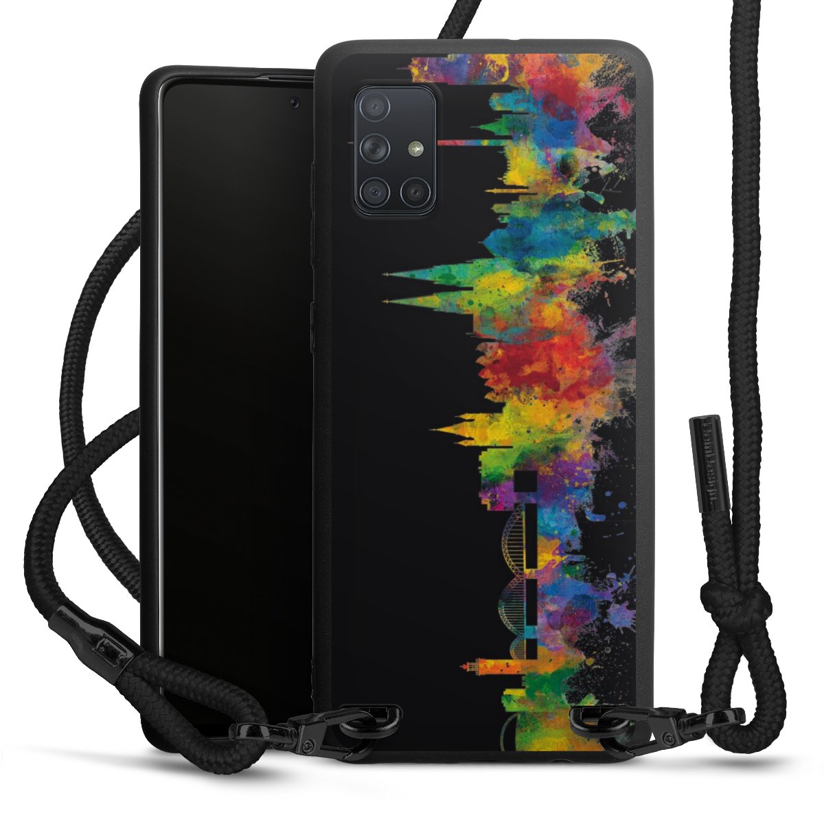 We use the solid direct print process for this phone case, which is why the print area only covers the back and the edge remains unprinted. The case to wear around your neck can be ordered unprinted, fully printed, or partially printed. For your design, either choose one of our exclusive shop motifs or get creative and create your own design, for example with photos and overlays. Design your own personal trend accessory and make an individual statement on the streets!