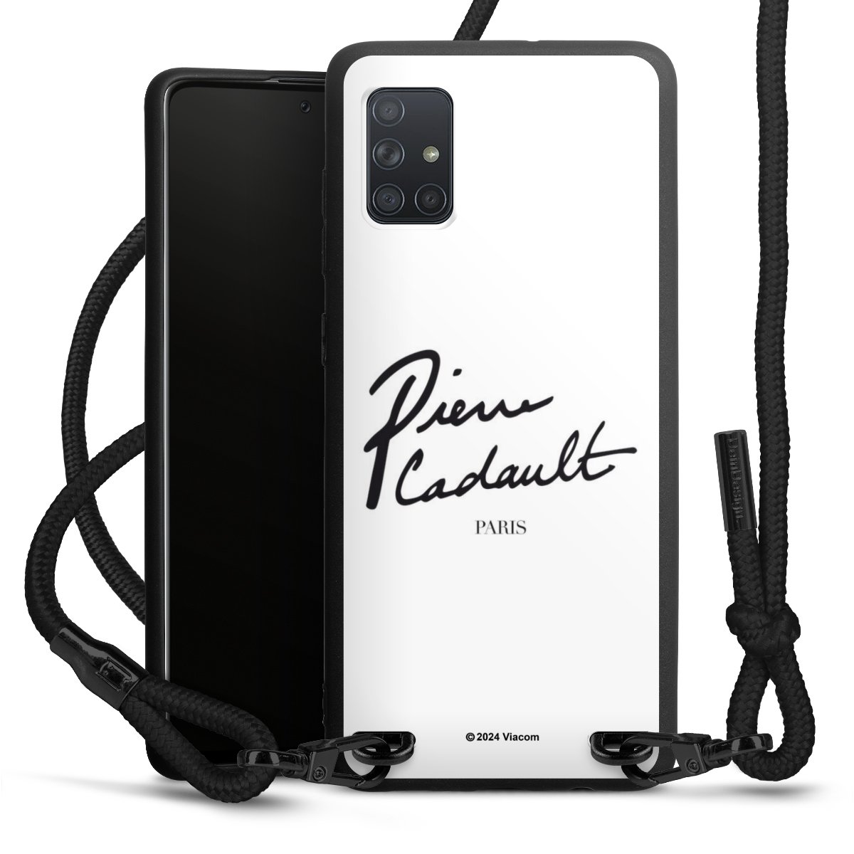 The matt black silicone case is made of flexible TPU (thermoplastic polyurethane) and offers robust protection. The durable, unbreakable material makes the cover flexible and dimensionally stable at the same time. The matte surface makes your design stand out more and is less susceptible to fingerprints and dirt. The stylish trend accessory fits comfortably in the hand and is perfectly complemented by the fabric (polyester) mobile phone strap. The braided fabric strap is approx. 1.70 metres long with a diameter of approx. 0.5 cm. Due to the special knotting technique, the length of the strap can be adjusted by simply pulling it, so that you can adapt it individually to your wishes. The practical case to wear around your neck is available with the fabric strap in black. As a little icing on the cake, we have provided the strap with a chic metal fastener in matt black. The strap is securely fastened to the case with loops made of high-quality genuine leather and press studs. The ends of the fabric strap are covered with metallic end caps and thus protected from fraying.