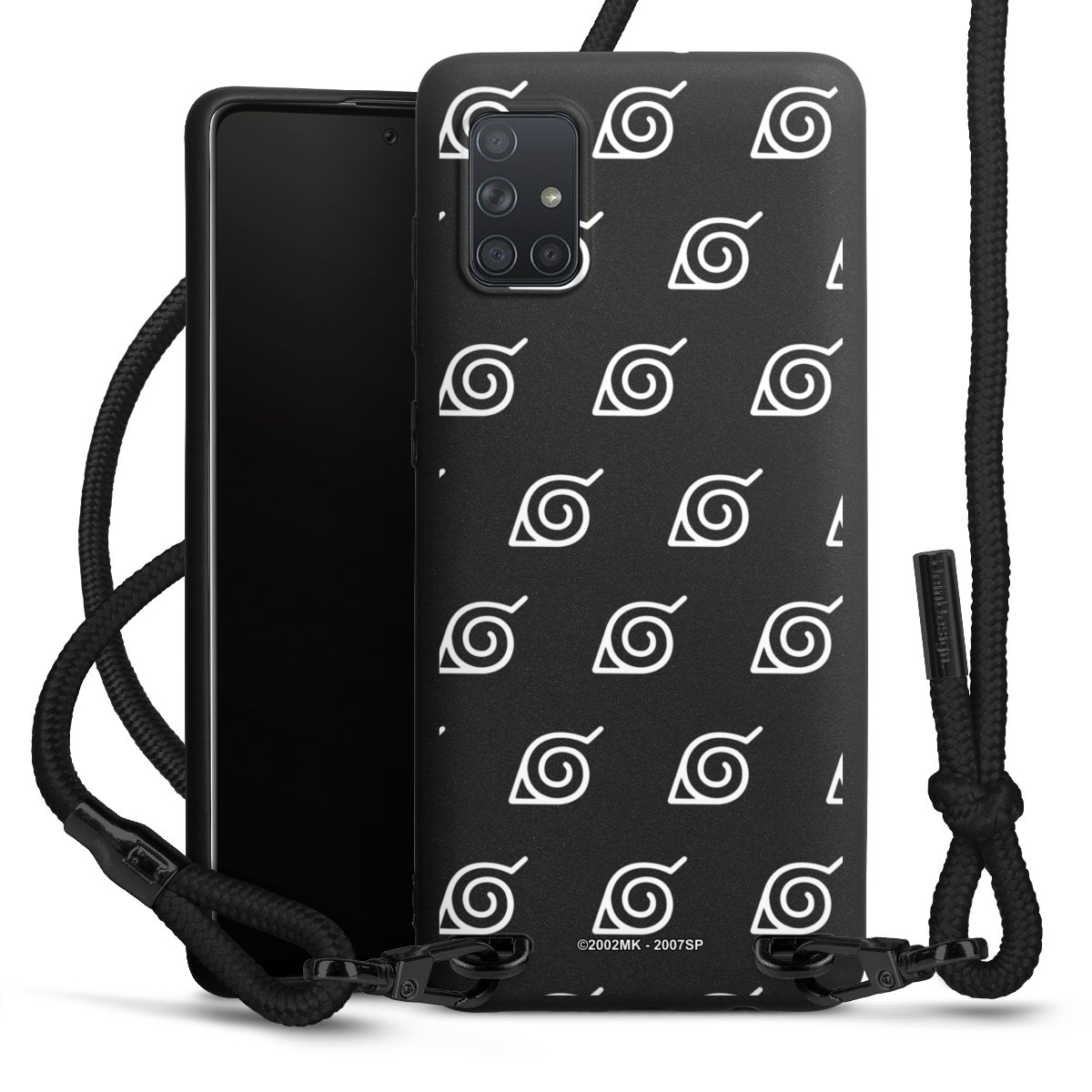 The matt black silicone case is made of flexible TPU (thermoplastic polyurethane) and offers robust protection. The durable, unbreakable material makes the cover flexible and dimensionally stable at the same time. The matte surface makes your design stand out more and is less susceptible to fingerprints and dirt. The stylish trend accessory fits comfortably in the hand and is perfectly complemented by the fabric (polyester) mobile phone strap. The braided fabric strap is approx. 1.70 metres long with a diameter of approx. 0.5 cm. Due to the special knotting technique, the length of the strap can be adjusted by simply pulling it, so that you can adapt it individually to your wishes. The practical case to wear around your neck is available with the fabric strap in black. As a little icing on the cake, we have provided the strap with a chic metal fastener in matt black. The strap is securely fastened to the case with loops made of high-quality genuine leather and press studs. The ends of the fabric strap are covered with metallic end caps and thus protected from fraying.