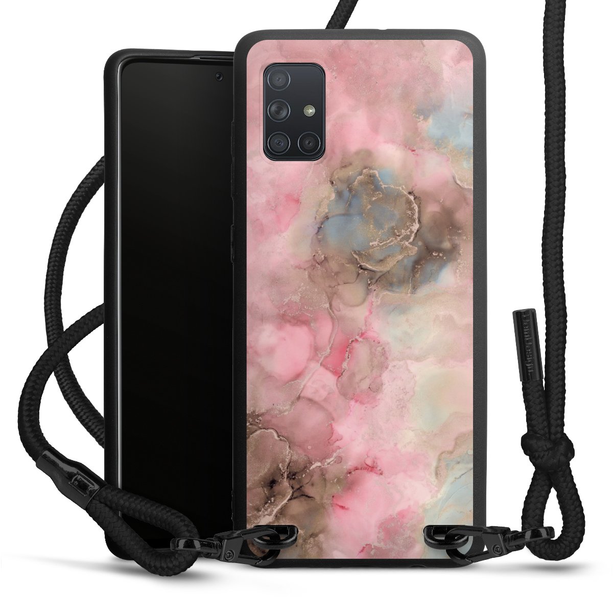 The matt black silicone case is made of flexible TPU (thermoplastic polyurethane) and offers robust protection. The durable, unbreakable material makes the cover flexible and dimensionally stable at the same time. The matte surface makes your design stand out more and is less susceptible to fingerprints and dirt. The stylish trend accessory fits comfortably in the hand and is perfectly complemented by the fabric (polyester) mobile phone strap. The braided fabric strap is approx. 1.70 metres long with a diameter of approx. 0.5 cm. Due to the special knotting technique, the length of the strap can be adjusted by simply pulling it, so that you can adapt it individually to your wishes. The practical case to wear around your neck is available with the fabric strap in black. As a little icing on the cake, we have provided the strap with a chic metal fastener in matt black. The strap is securely fastened to the case with loops made of high-quality genuine leather and press studs. The ends of the fabric strap are covered with metallic end caps and thus protected from fraying.