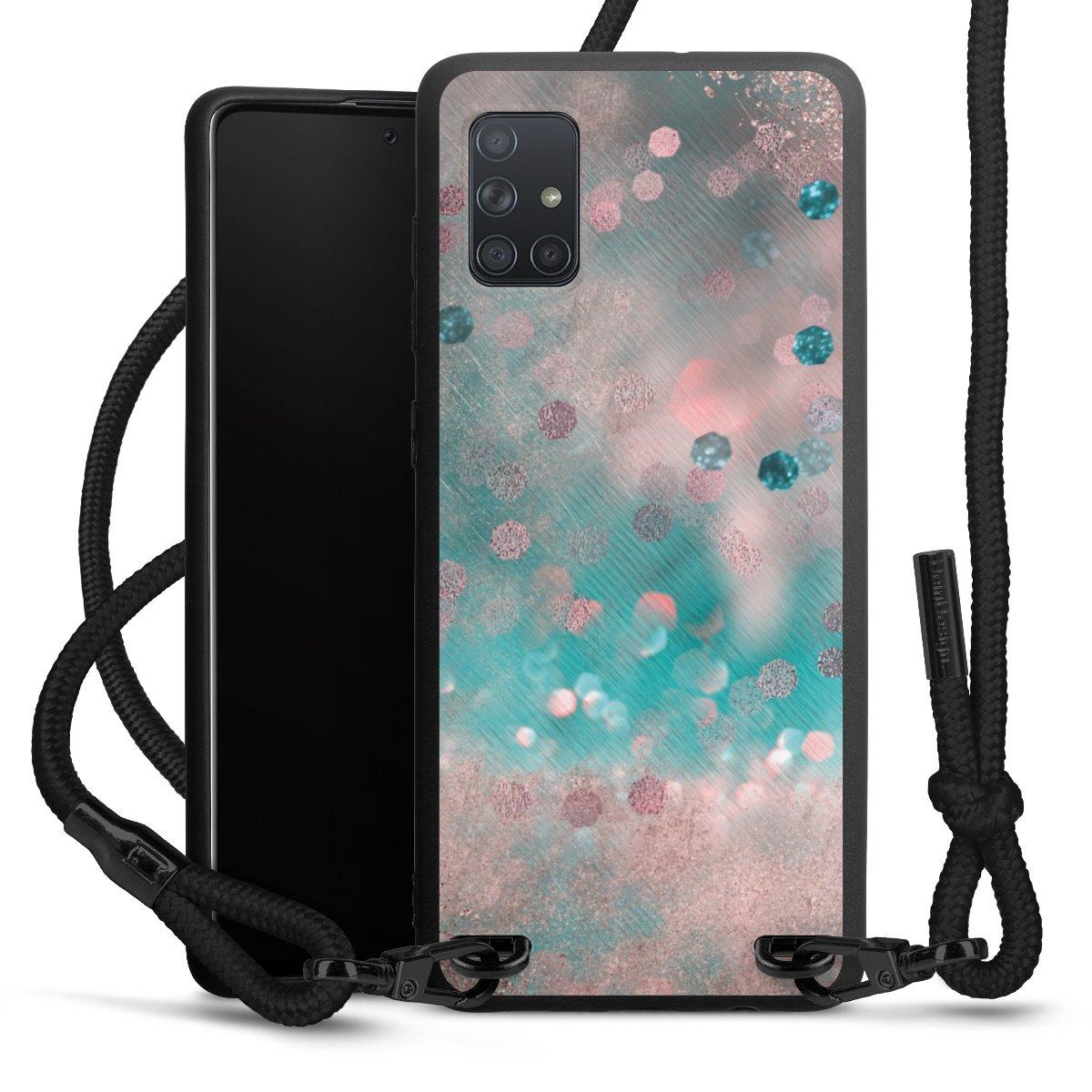 The matt black silicone case is made of flexible TPU (thermoplastic polyurethane) and offers robust protection. The durable, unbreakable material makes the cover flexible and dimensionally stable at the same time. The matte surface makes your design stand out more and is less susceptible to fingerprints and dirt. The stylish trend accessory fits comfortably in the hand and is perfectly complemented by the fabric (polyester) mobile phone strap. The braided fabric strap is approx. 1.70 metres long with a diameter of approx. 0.5 cm. Due to the special knotting technique, the length of the strap can be adjusted by simply pulling it, so that you can adapt it individually to your wishes. The practical case to wear around your neck is available with the fabric strap in black. As a little icing on the cake, we have provided the strap with a chic metal fastener in matt black. The strap is securely fastened to the case with loops made of high-quality genuine leather and press studs. The ends of the fabric strap are covered with metallic end caps and thus protected from fraying.