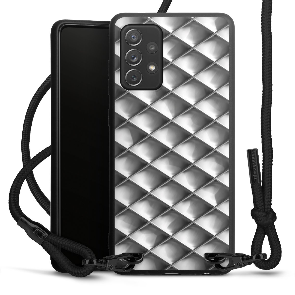 The matt black silicone case is made of flexible TPU (thermoplastic polyurethane) and offers robust protection. The durable, unbreakable material makes the cover flexible and dimensionally stable at the same time. The matte surface makes your design stand out more and is less susceptible to fingerprints and dirt. The stylish trend accessory fits comfortably in the hand and is perfectly complemented by the fabric (polyester) mobile phone strap. The braided fabric strap is approx. 1.70 metres long with a diameter of approx. 0.5 cm. Due to the special knotting technique, the length of the strap can be adjusted by simply pulling it, so that you can adapt it individually to your wishes. The practical case to wear around your neck is available with the fabric strap in black. As a little icing on the cake, we have provided the strap with a chic metal fastener in matt black. The strap is securely fastened to the case with loops made of high-quality genuine leather and press studs. The ends of the fabric strap are covered with metallic end caps and thus protected from fraying.