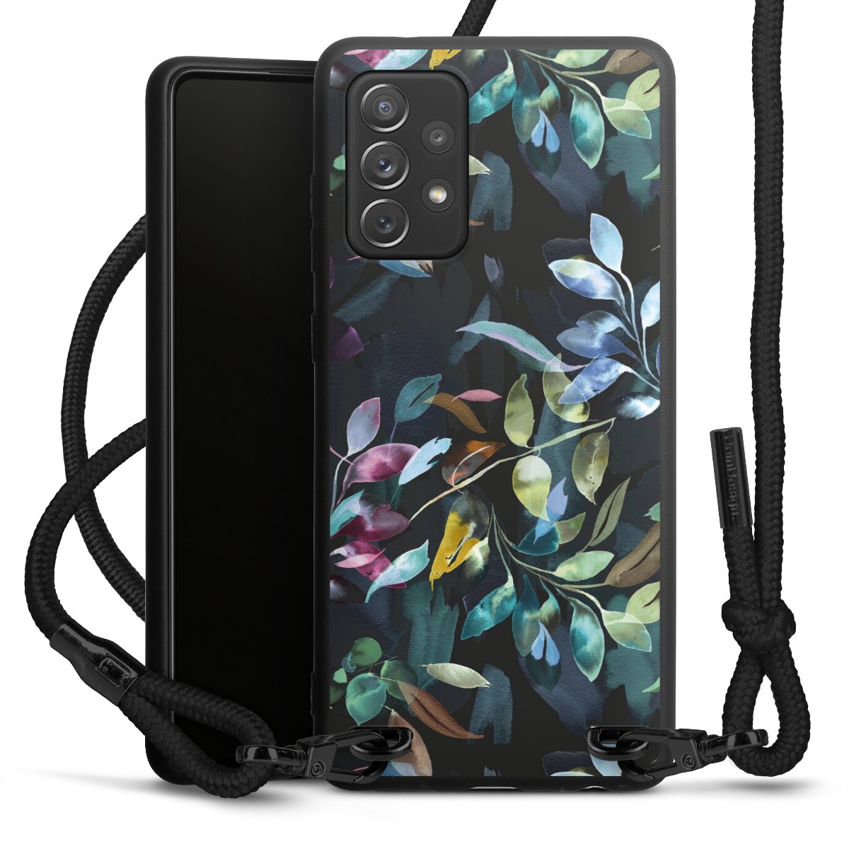 The matt black silicone case is made of flexible TPU (thermoplastic polyurethane) and offers robust protection. The durable, unbreakable material makes the cover flexible and dimensionally stable at the same time. The matte surface makes your design stand out more and is less susceptible to fingerprints and dirt. The stylish trend accessory fits comfortably in the hand and is perfectly complemented by the fabric (polyester) mobile phone strap. The braided fabric strap is approx. 1.70 metres long with a diameter of approx. 0.5 cm. Due to the special knotting technique, the length of the strap can be adjusted by simply pulling it, so that you can adapt it individually to your wishes. The practical case to wear around your neck is available with the fabric strap in black. As a little icing on the cake, we have provided the strap with a chic metal fastener in matt black. The strap is securely fastened to the case with loops made of high-quality genuine leather and press studs. The ends of the fabric strap are covered with metallic end caps and thus protected from fraying.