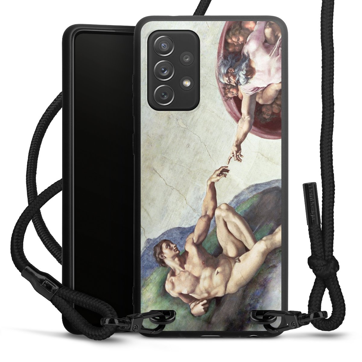 The matt black silicone case is made of flexible TPU (thermoplastic polyurethane) and offers robust protection. The durable, unbreakable material makes the cover flexible and dimensionally stable at the same time. The matte surface makes your design stand out more and is less susceptible to fingerprints and dirt. The stylish trend accessory fits comfortably in the hand and is perfectly complemented by the fabric (polyester) mobile phone strap. The braided fabric strap is approx. 1.70 metres long with a diameter of approx. 0.5 cm. Due to the special knotting technique, the length of the strap can be adjusted by simply pulling it, so that you can adapt it individually to your wishes. The practical case to wear around your neck is available with the fabric strap in black. As a little icing on the cake, we have provided the strap with a chic metal fastener in matt black. The strap is securely fastened to the case with loops made of high-quality genuine leather and press studs. The ends of the fabric strap are covered with metallic end caps and thus protected from fraying.