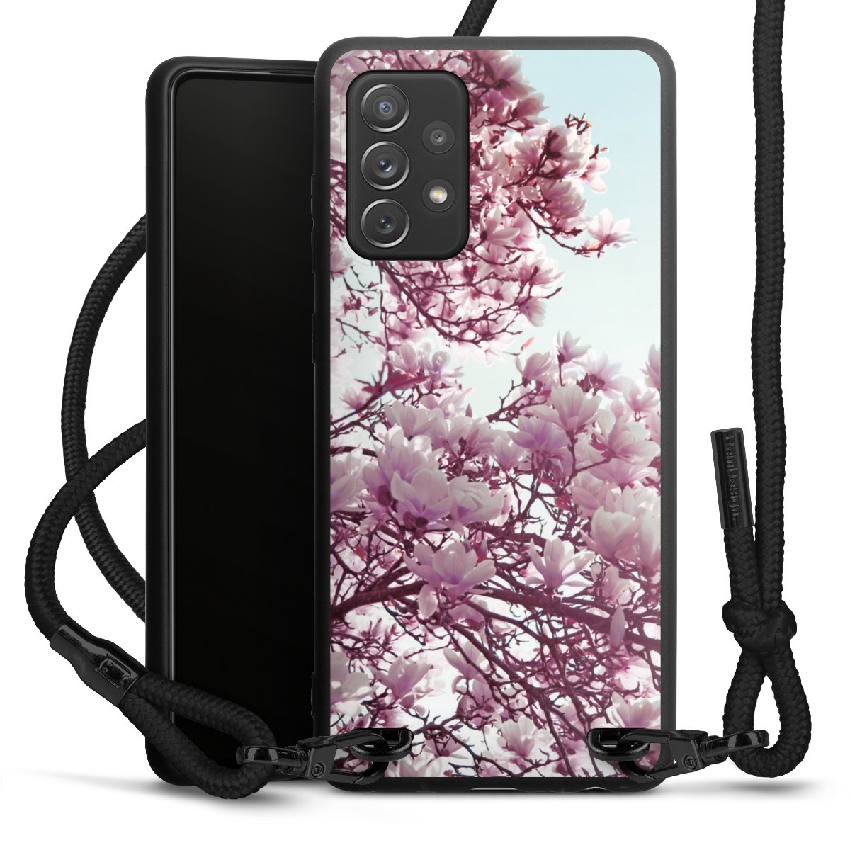 We use the solid direct print process for this phone case, which is why the print area only covers the back and the edge remains unprinted. The case to wear around your neck can be ordered unprinted, fully printed, or partially printed. For your design, either choose one of our exclusive shop motifs or get creative and create your own design, for example with photos and overlays. Design your own personal trend accessory and make an individual statement on the streets!