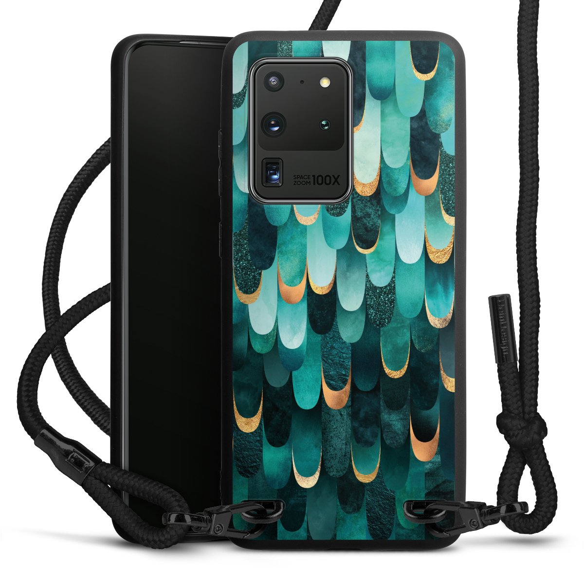 The matt black silicone case is made of flexible TPU (thermoplastic polyurethane) and offers robust protection. The durable, unbreakable material makes the cover flexible and dimensionally stable at the same time. The matte surface makes your design stand out more and is less susceptible to fingerprints and dirt. The stylish trend accessory fits comfortably in the hand and is perfectly complemented by the fabric (polyester) mobile phone strap. The braided fabric strap is approx. 1.70 metres long with a diameter of approx. 0.5 cm. Due to the special knotting technique, the length of the strap can be adjusted by simply pulling it, so that you can adapt it individually to your wishes. The practical case to wear around your neck is available with the fabric strap in black. As a little icing on the cake, we have provided the strap with a chic metal fastener in matt black. The strap is securely fastened to the case with loops made of high-quality genuine leather and press studs. The ends of the fabric strap are covered with metallic end caps and thus protected from fraying.