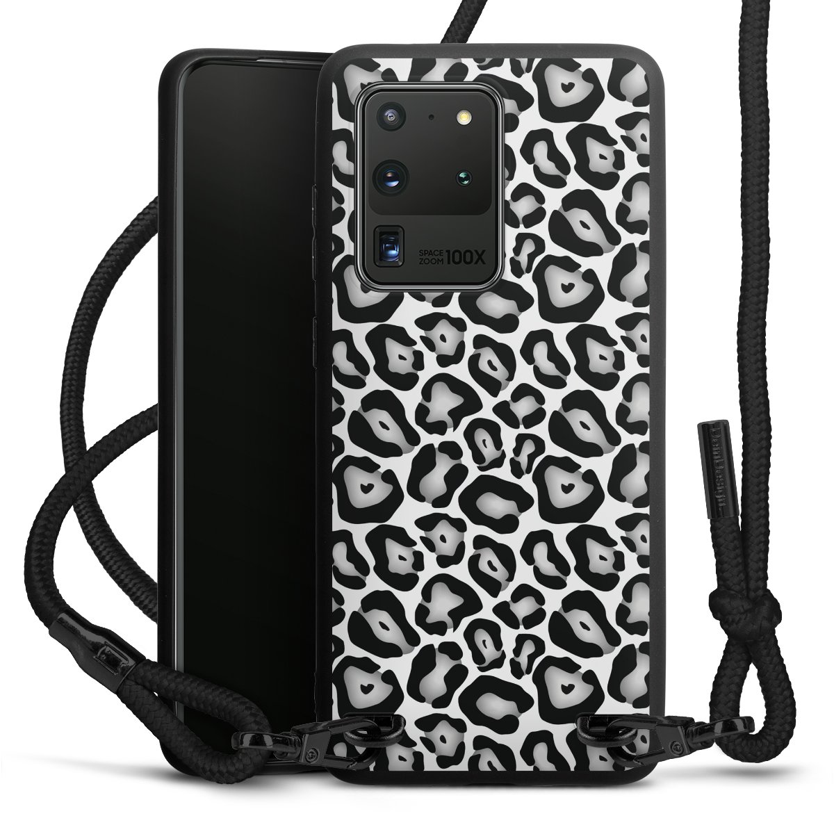 The matt black silicone case is made of flexible TPU (thermoplastic polyurethane) and offers robust protection. The durable, unbreakable material makes the cover flexible and dimensionally stable at the same time. The matte surface makes your design stand out more and is less susceptible to fingerprints and dirt. The stylish trend accessory fits comfortably in the hand and is perfectly complemented by the fabric (polyester) mobile phone strap. The braided fabric strap is approx. 1.70 metres long with a diameter of approx. 0.5 cm. Due to the special knotting technique, the length of the strap can be adjusted by simply pulling it, so that you can adapt it individually to your wishes. The practical case to wear around your neck is available with the fabric strap in black. As a little icing on the cake, we have provided the strap with a chic metal fastener in matt black. The strap is securely fastened to the case with loops made of high-quality genuine leather and press studs. The ends of the fabric strap are covered with metallic end caps and thus protected from fraying.