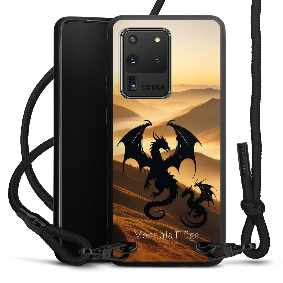 The matt black silicone case is made of flexible TPU (thermoplastic polyurethane) and offers robust protection. The durable, unbreakable material makes the cover flexible and dimensionally stable at the same time. The matte surface makes your design stand out more and is less susceptible to fingerprints and dirt. The stylish trend accessory fits comfortably in the hand and is perfectly complemented by the fabric (polyester) mobile phone strap. The braided fabric strap is approx. 1.70 metres long with a diameter of approx. 0.5 cm. Due to the special knotting technique, the length of the strap can be adjusted by simply pulling it, so that you can adapt it individually to your wishes. The practical case to wear around your neck is available with the fabric strap in black. As a little icing on the cake, we have provided the strap with a chic metal fastener in matt black. The strap is securely fastened to the case with loops made of high-quality genuine leather and press studs. The ends of the fabric strap are covered with metallic end caps and thus protected from fraying.