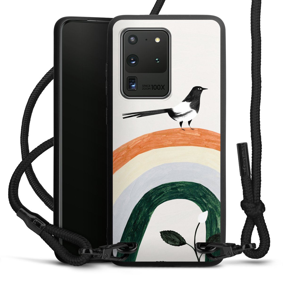 We use the solid direct print process for this phone case, which is why the print area only covers the back and the edge remains unprinted. The case to wear around your neck can be ordered unprinted, fully printed, or partially printed. For your design, either choose one of our exclusive shop motifs or get creative and create your own design, for example with photos and overlays. Design your own personal trend accessory and make an individual statement on the streets!