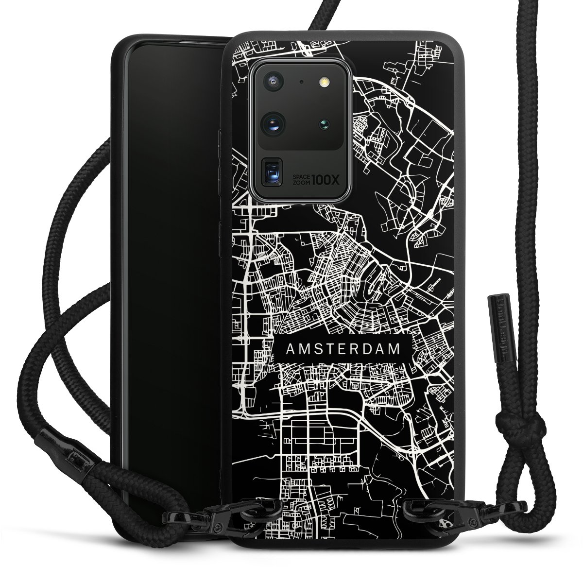 The matt black silicone case is made of flexible TPU (thermoplastic polyurethane) and offers robust protection. The durable, unbreakable material makes the cover flexible and dimensionally stable at the same time. The matte surface makes your design stand out more and is less susceptible to fingerprints and dirt. The stylish trend accessory fits comfortably in the hand and is perfectly complemented by the fabric (polyester) mobile phone strap. The braided fabric strap is approx. 1.70 metres long with a diameter of approx. 0.5 cm. Due to the special knotting technique, the length of the strap can be adjusted by simply pulling it, so that you can adapt it individually to your wishes. The practical case to wear around your neck is available with the fabric strap in black. As a little icing on the cake, we have provided the strap with a chic metal fastener in matt black. The strap is securely fastened to the case with loops made of high-quality genuine leather and press studs. The ends of the fabric strap are covered with metallic end caps and thus protected from fraying.