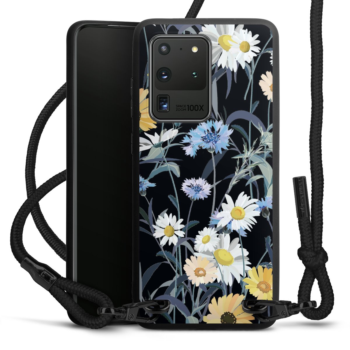 The matt black silicone case is made of flexible TPU (thermoplastic polyurethane) and offers robust protection. The durable, unbreakable material makes the cover flexible and dimensionally stable at the same time. The matte surface makes your design stand out more and is less susceptible to fingerprints and dirt. The stylish trend accessory fits comfortably in the hand and is perfectly complemented by the fabric (polyester) mobile phone strap. The braided fabric strap is approx. 1.70 metres long with a diameter of approx. 0.5 cm. Due to the special knotting technique, the length of the strap can be adjusted by simply pulling it, so that you can adapt it individually to your wishes. The practical case to wear around your neck is available with the fabric strap in black. As a little icing on the cake, we have provided the strap with a chic metal fastener in matt black. The strap is securely fastened to the case with loops made of high-quality genuine leather and press studs. The ends of the fabric strap are covered with metallic end caps and thus protected from fraying.