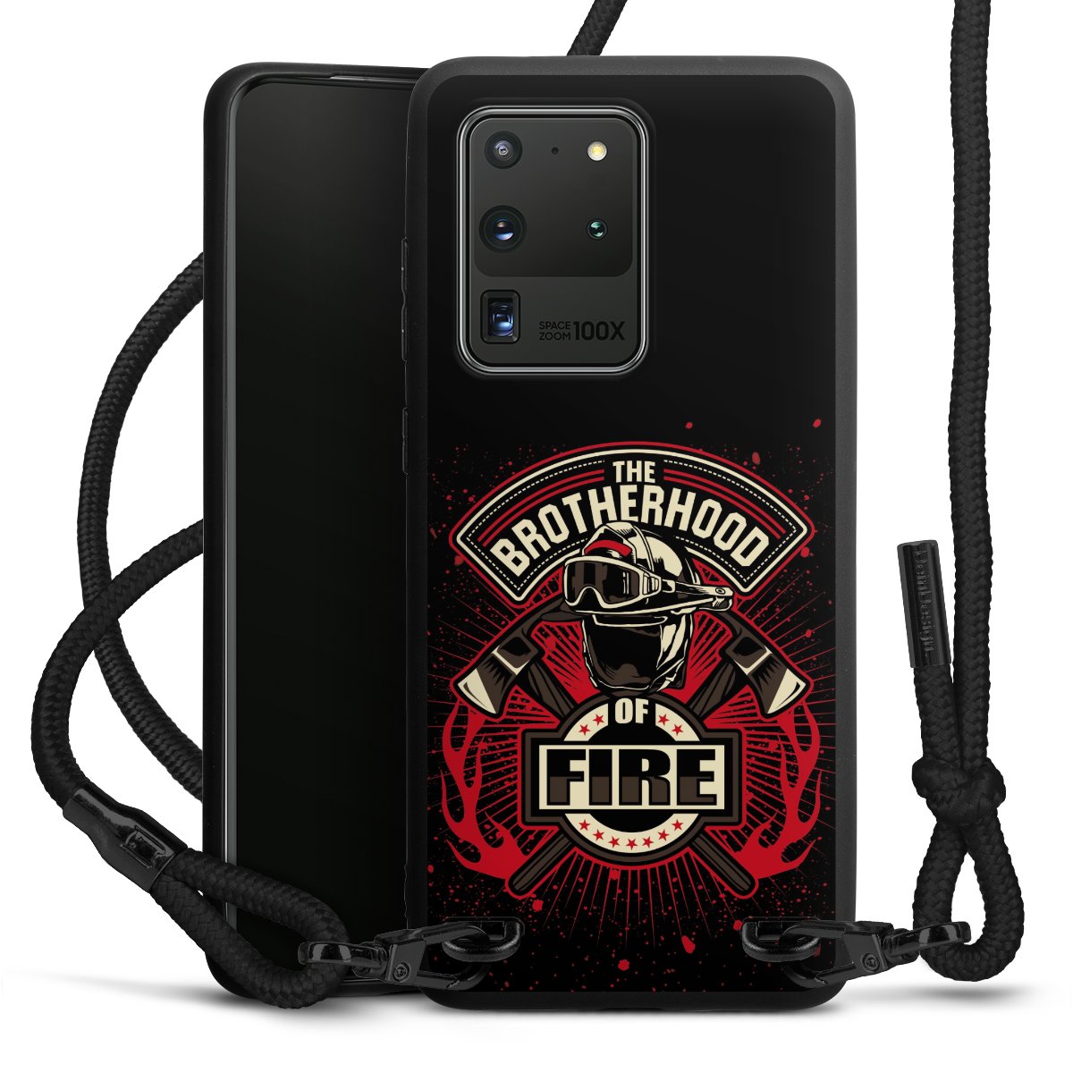 The matt black silicone case is made of flexible TPU (thermoplastic polyurethane) and offers robust protection. The durable, unbreakable material makes the cover flexible and dimensionally stable at the same time. The matte surface makes your design stand out more and is less susceptible to fingerprints and dirt. The stylish trend accessory fits comfortably in the hand and is perfectly complemented by the fabric (polyester) mobile phone strap. The braided fabric strap is approx. 1.70 metres long with a diameter of approx. 0.5 cm. Due to the special knotting technique, the length of the strap can be adjusted by simply pulling it, so that you can adapt it individually to your wishes. The practical case to wear around your neck is available with the fabric strap in black. As a little icing on the cake, we have provided the strap with a chic metal fastener in matt black. The strap is securely fastened to the case with loops made of high-quality genuine leather and press studs. The ends of the fabric strap are covered with metallic end caps and thus protected from fraying.
