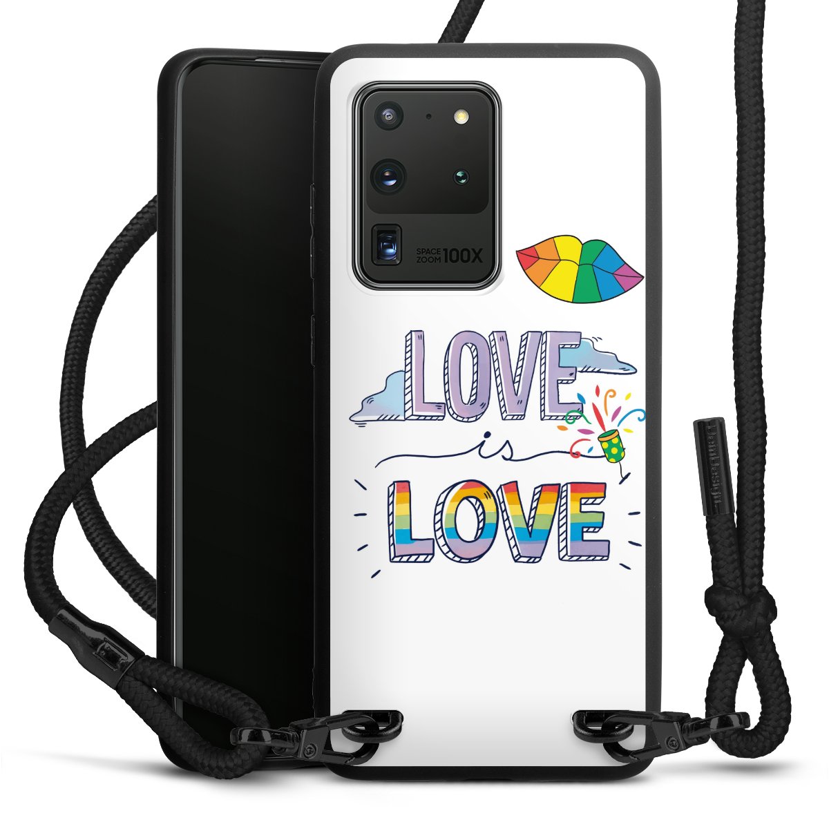 We use the solid direct print process for this phone case, which is why the print area only covers the back and the edge remains unprinted. The case to wear around your neck can be ordered unprinted, fully printed, or partially printed. For your design, either choose one of our exclusive shop motifs or get creative and create your own design, for example with photos and overlays. Design your own personal trend accessory and make an individual statement on the streets!