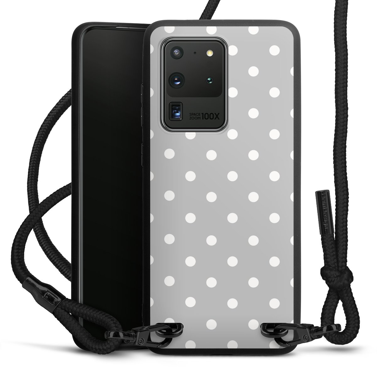 The matt black silicone case is made of flexible TPU (thermoplastic polyurethane) and offers robust protection. The durable, unbreakable material makes the cover flexible and dimensionally stable at the same time. The matte surface makes your design stand out more and is less susceptible to fingerprints and dirt. The stylish trend accessory fits comfortably in the hand and is perfectly complemented by the fabric (polyester) mobile phone strap. The braided fabric strap is approx. 1.70 metres long with a diameter of approx. 0.5 cm. Due to the special knotting technique, the length of the strap can be adjusted by simply pulling it, so that you can adapt it individually to your wishes. The practical case to wear around your neck is available with the fabric strap in black. As a little icing on the cake, we have provided the strap with a chic metal fastener in matt black. The strap is securely fastened to the case with loops made of high-quality genuine leather and press studs. The ends of the fabric strap are covered with metallic end caps and thus protected from fraying.