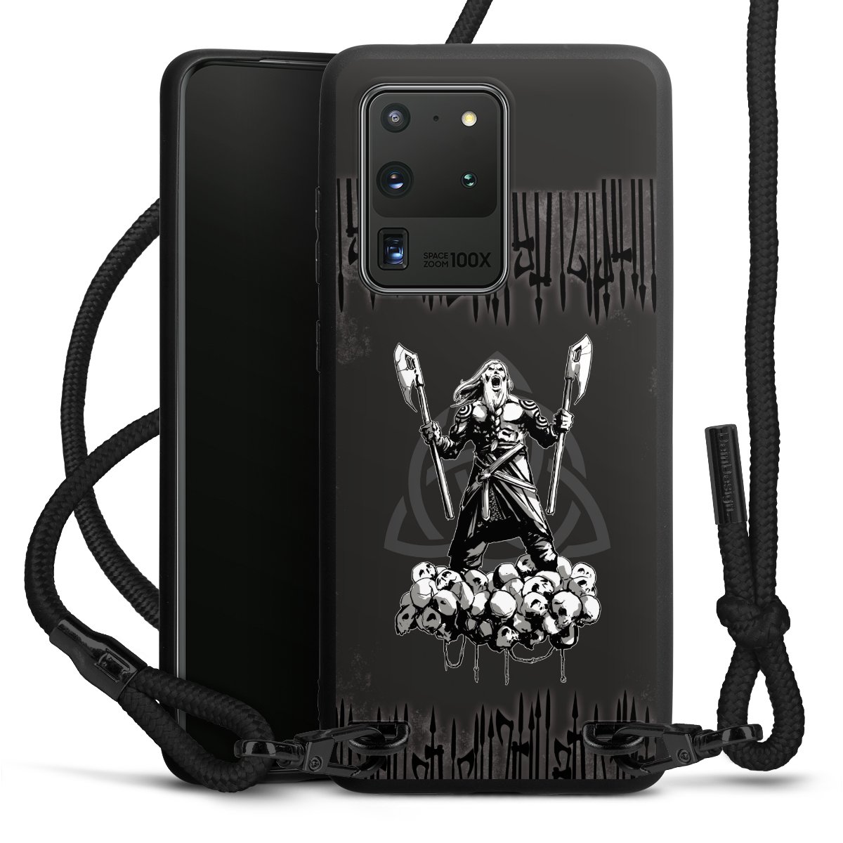 The matt black silicone case is made of flexible TPU (thermoplastic polyurethane) and offers robust protection. The durable, unbreakable material makes the cover flexible and dimensionally stable at the same time. The matte surface makes your design stand out more and is less susceptible to fingerprints and dirt. The stylish trend accessory fits comfortably in the hand and is perfectly complemented by the fabric (polyester) mobile phone strap. The braided fabric strap is approx. 1.70 metres long with a diameter of approx. 0.5 cm. Due to the special knotting technique, the length of the strap can be adjusted by simply pulling it, so that you can adapt it individually to your wishes. The practical case to wear around your neck is available with the fabric strap in black. As a little icing on the cake, we have provided the strap with a chic metal fastener in matt black. The strap is securely fastened to the case with loops made of high-quality genuine leather and press studs. The ends of the fabric strap are covered with metallic end caps and thus protected from fraying.