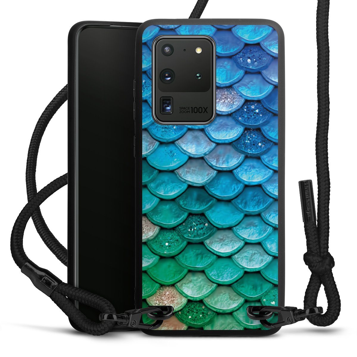 The matt black silicone case is made of flexible TPU (thermoplastic polyurethane) and offers robust protection. The durable, unbreakable material makes the cover flexible and dimensionally stable at the same time. The matte surface makes your design stand out more and is less susceptible to fingerprints and dirt. The stylish trend accessory fits comfortably in the hand and is perfectly complemented by the fabric (polyester) mobile phone strap. The braided fabric strap is approx. 1.70 metres long with a diameter of approx. 0.5 cm. Due to the special knotting technique, the length of the strap can be adjusted by simply pulling it, so that you can adapt it individually to your wishes. The practical case to wear around your neck is available with the fabric strap in black. As a little icing on the cake, we have provided the strap with a chic metal fastener in matt black. The strap is securely fastened to the case with loops made of high-quality genuine leather and press studs. The ends of the fabric strap are covered with metallic end caps and thus protected from fraying.