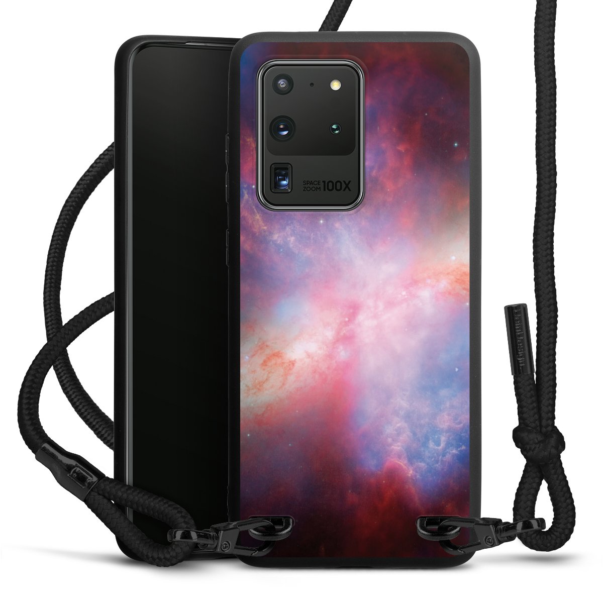 We use the solid direct print process for this phone case, which is why the print area only covers the back and the edge remains unprinted. The case to wear around your neck can be ordered unprinted, fully printed, or partially printed. For your design, either choose one of our exclusive shop motifs or get creative and create your own design, for example with photos and overlays. Design your own personal trend accessory and make an individual statement on the streets!