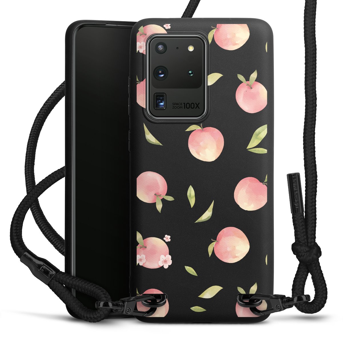 We use the solid direct print process for this phone case, which is why the print area only covers the back and the edge remains unprinted. The case to wear around your neck can be ordered unprinted, fully printed, or partially printed. For your design, either choose one of our exclusive shop motifs or get creative and create your own design, for example with photos and overlays. Design your own personal trend accessory and make an individual statement on the streets!