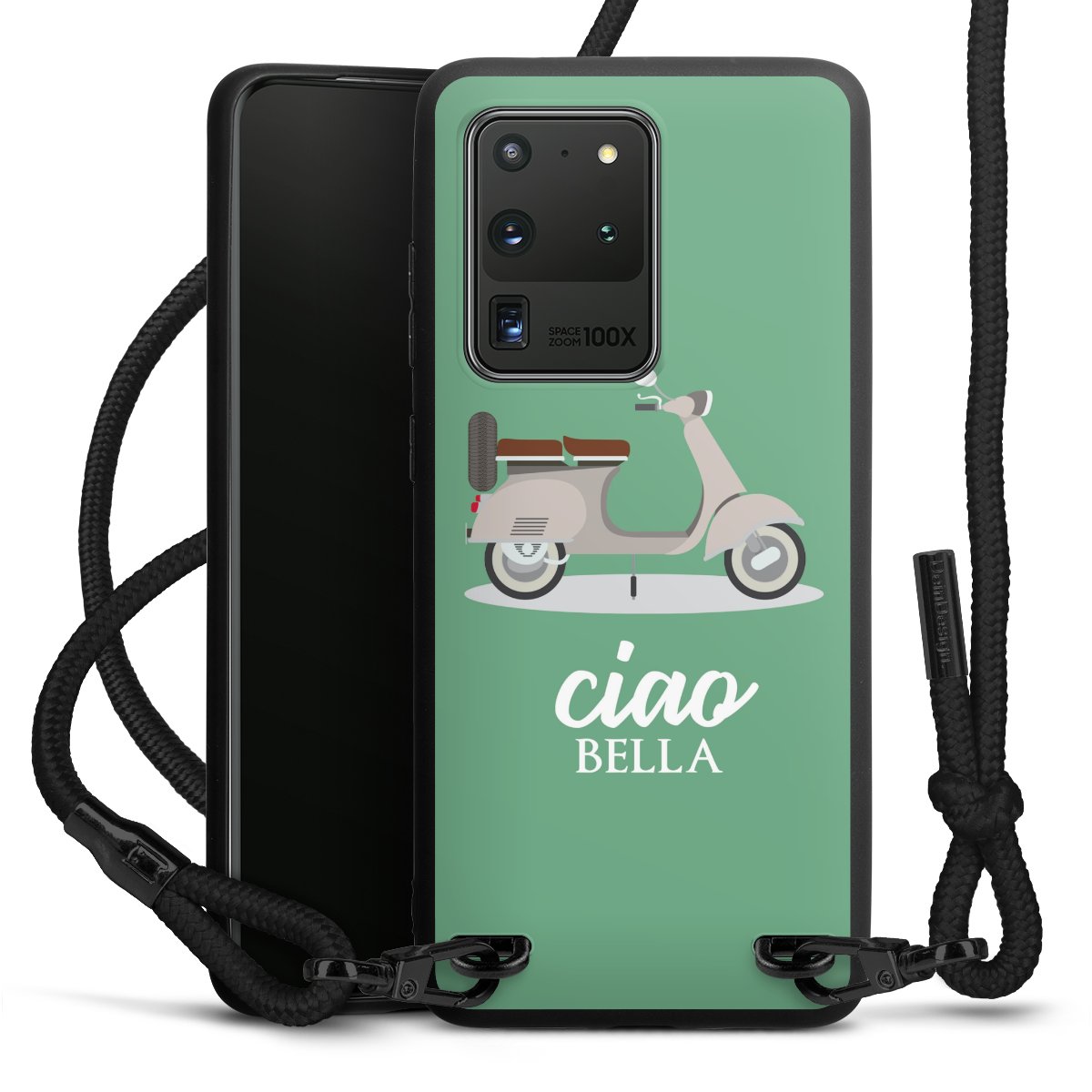 We use the solid direct print process for this phone case, which is why the print area only covers the back and the edge remains unprinted. The case to wear around your neck can be ordered unprinted, fully printed, or partially printed. For your design, either choose one of our exclusive shop motifs or get creative and create your own design, for example with photos and overlays. Design your own personal trend accessory and make an individual statement on the streets!