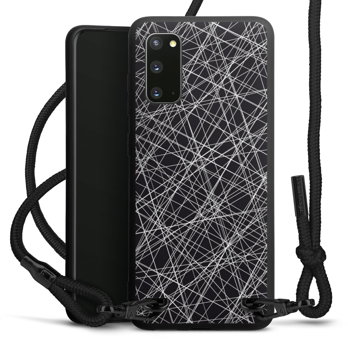 The matt black silicone case is made of flexible TPU (thermoplastic polyurethane) and offers robust protection. The durable, unbreakable material makes the cover flexible and dimensionally stable at the same time. The matte surface makes your design stand out more and is less susceptible to fingerprints and dirt. The stylish trend accessory fits comfortably in the hand and is perfectly complemented by the fabric (polyester) mobile phone strap. The braided fabric strap is approx. 1.70 metres long with a diameter of approx. 0.5 cm. Due to the special knotting technique, the length of the strap can be adjusted by simply pulling it, so that you can adapt it individually to your wishes. The practical case to wear around your neck is available with the fabric strap in black. As a little icing on the cake, we have provided the strap with a chic metal fastener in matt black. The strap is securely fastened to the case with loops made of high-quality genuine leather and press studs. The ends of the fabric strap are covered with metallic end caps and thus protected from fraying.