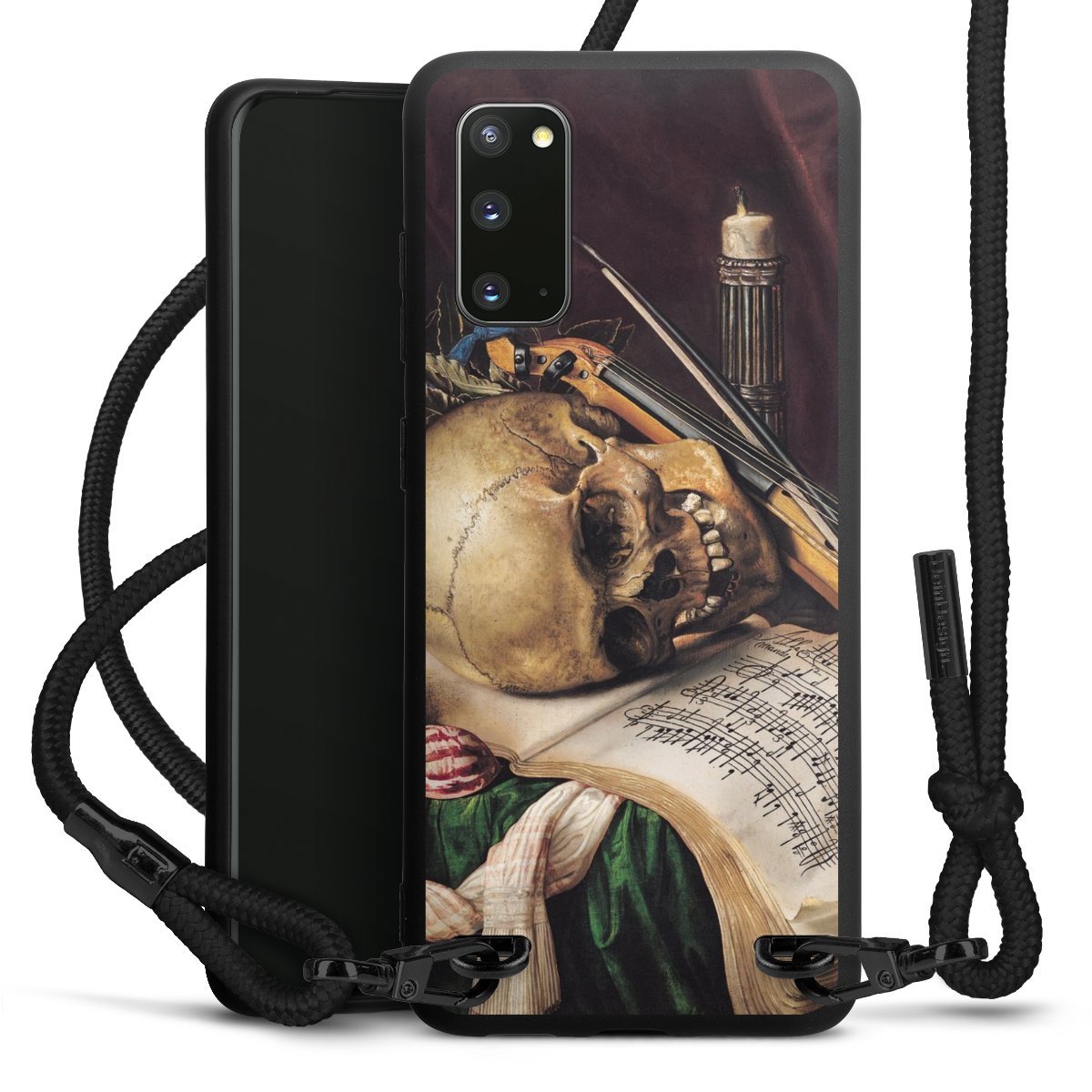 The matt black silicone case is made of flexible TPU (thermoplastic polyurethane) and offers robust protection. The durable, unbreakable material makes the cover flexible and dimensionally stable at the same time. The matte surface makes your design stand out more and is less susceptible to fingerprints and dirt. The stylish trend accessory fits comfortably in the hand and is perfectly complemented by the fabric (polyester) mobile phone strap. The braided fabric strap is approx. 1.70 metres long with a diameter of approx. 0.5 cm. Due to the special knotting technique, the length of the strap can be adjusted by simply pulling it, so that you can adapt it individually to your wishes. The practical case to wear around your neck is available with the fabric strap in black. As a little icing on the cake, we have provided the strap with a chic metal fastener in matt black. The strap is securely fastened to the case with loops made of high-quality genuine leather and press studs. The ends of the fabric strap are covered with metallic end caps and thus protected from fraying.