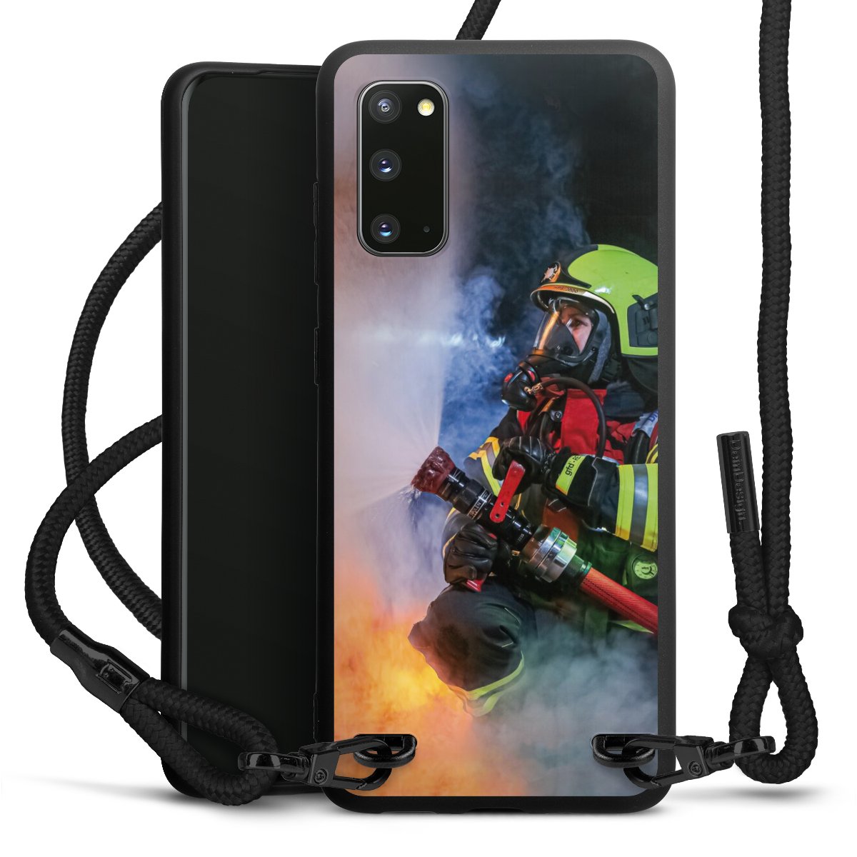 The matt black silicone case is made of flexible TPU (thermoplastic polyurethane) and offers robust protection. The durable, unbreakable material makes the cover flexible and dimensionally stable at the same time. The matte surface makes your design stand out more and is less susceptible to fingerprints and dirt. The stylish trend accessory fits comfortably in the hand and is perfectly complemented by the fabric (polyester) mobile phone strap. The braided fabric strap is approx. 1.70 metres long with a diameter of approx. 0.5 cm. Due to the special knotting technique, the length of the strap can be adjusted by simply pulling it, so that you can adapt it individually to your wishes. The practical case to wear around your neck is available with the fabric strap in black. As a little icing on the cake, we have provided the strap with a chic metal fastener in matt black. The strap is securely fastened to the case with loops made of high-quality genuine leather and press studs. The ends of the fabric strap are covered with metallic end caps and thus protected from fraying.