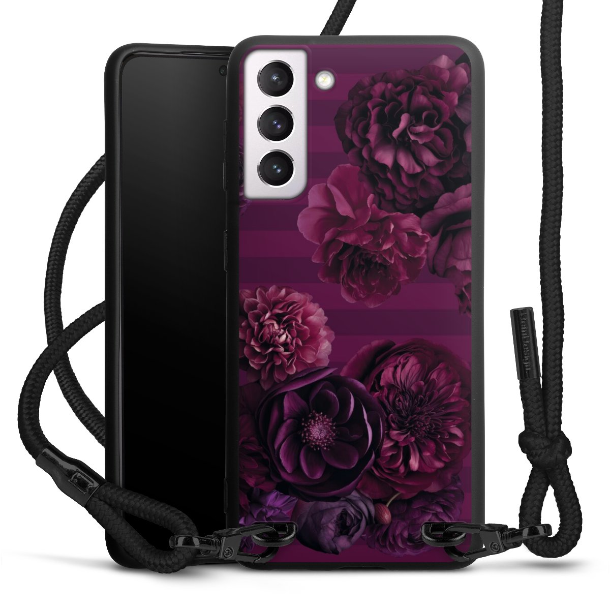 The matt black silicone case is made of flexible TPU (thermoplastic polyurethane) and offers robust protection. The durable, unbreakable material makes the cover flexible and dimensionally stable at the same time. The matte surface makes your design stand out more and is less susceptible to fingerprints and dirt. The stylish trend accessory fits comfortably in the hand and is perfectly complemented by the fabric (polyester) mobile phone strap. The braided fabric strap is approx. 1.70 metres long with a diameter of approx. 0.5 cm. Due to the special knotting technique, the length of the strap can be adjusted by simply pulling it, so that you can adapt it individually to your wishes. The practical case to wear around your neck is available with the fabric strap in black. As a little icing on the cake, we have provided the strap with a chic metal fastener in matt black. The strap is securely fastened to the case with loops made of high-quality genuine leather and press studs. The ends of the fabric strap are covered with metallic end caps and thus protected from fraying.