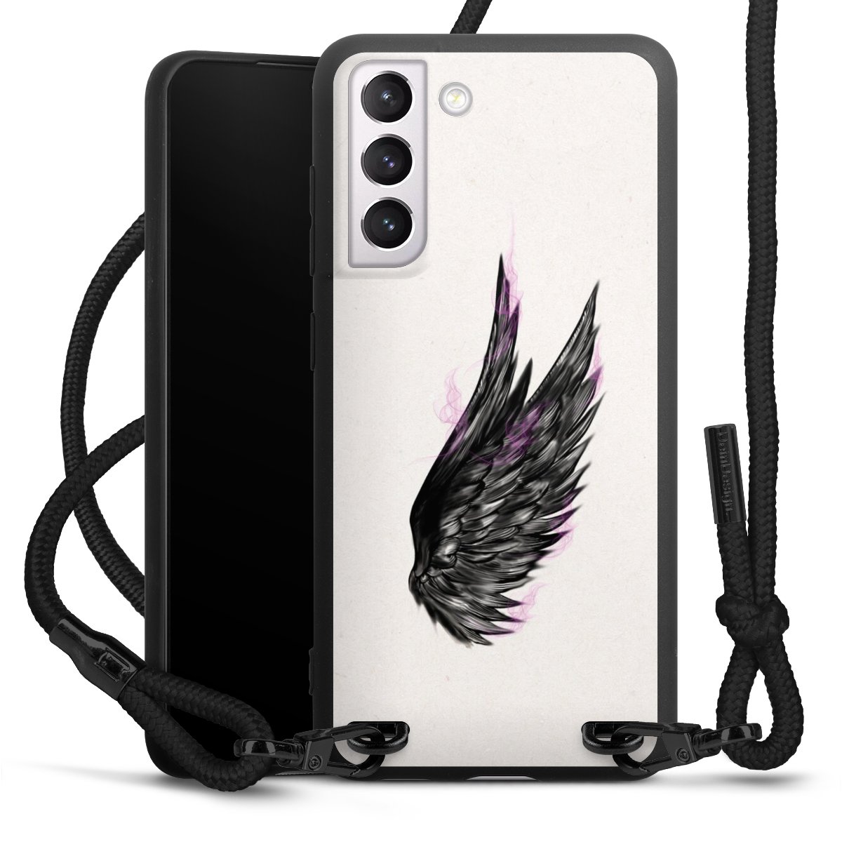 We use the solid direct print process for this phone case, which is why the print area only covers the back and the edge remains unprinted. The case to wear around your neck can be ordered unprinted, fully printed, or partially printed. For your design, either choose one of our exclusive shop motifs or get creative and create your own design, for example with photos and overlays. Design your own personal trend accessory and make an individual statement on the streets!