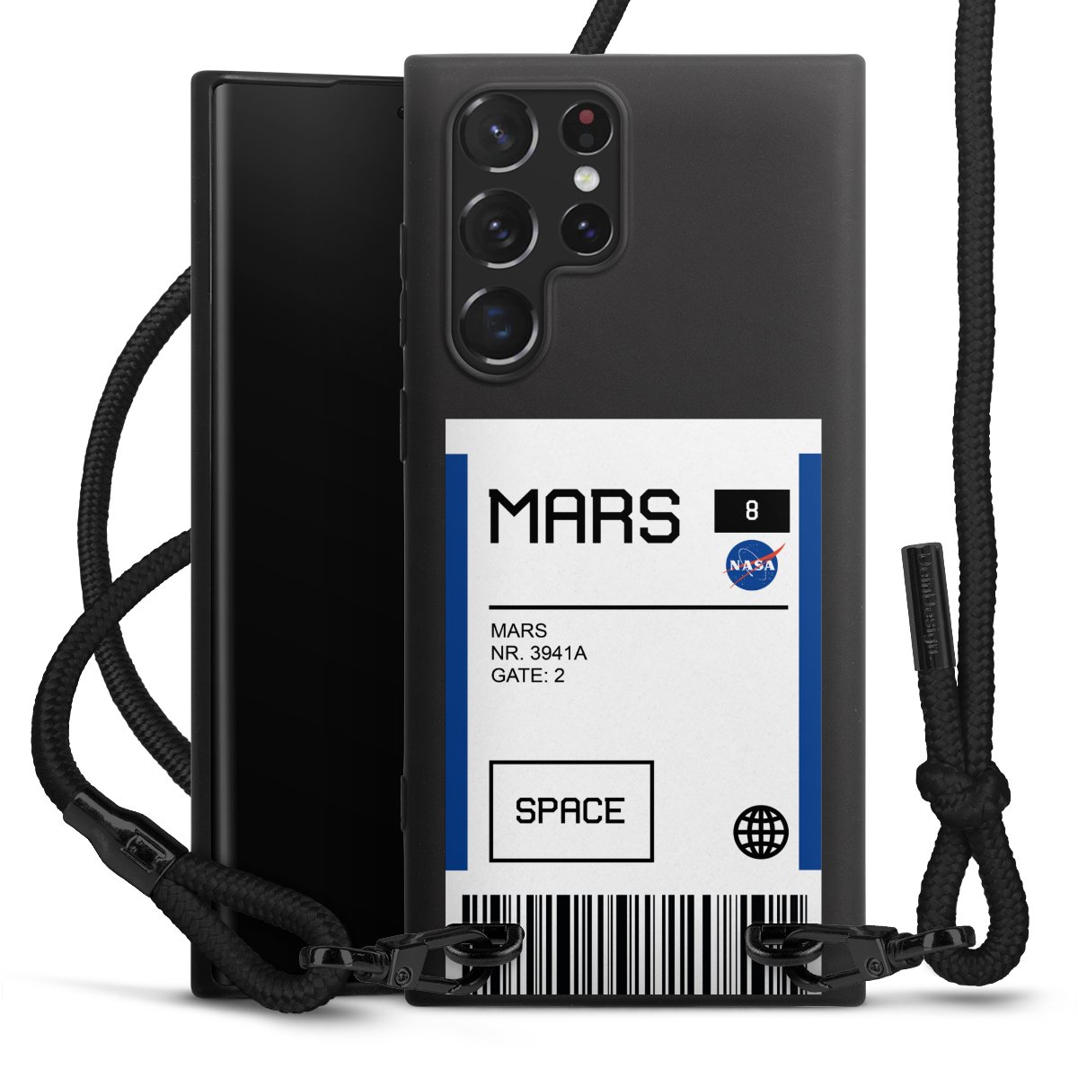 We use the solid direct print process for this phone case, which is why the print area only covers the back and the edge remains unprinted. The case to wear around your neck can be ordered unprinted, fully printed, or partially printed. For your design, either choose one of our exclusive shop motifs or get creative and create your own design, for example with photos and overlays. Design your own personal trend accessory and make an individual statement on the streets!