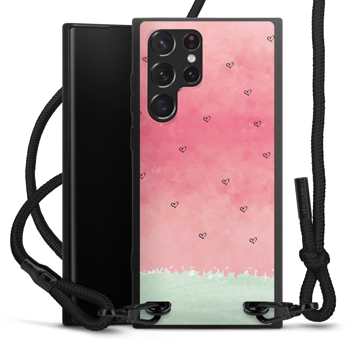 We use the solid direct print process for this phone case, which is why the print area only covers the back and the edge remains unprinted. The case to wear around your neck can be ordered unprinted, fully printed, or partially printed. For your design, either choose one of our exclusive shop motifs or get creative and create your own design, for example with photos and overlays. Design your own personal trend accessory and make an individual statement on the streets!