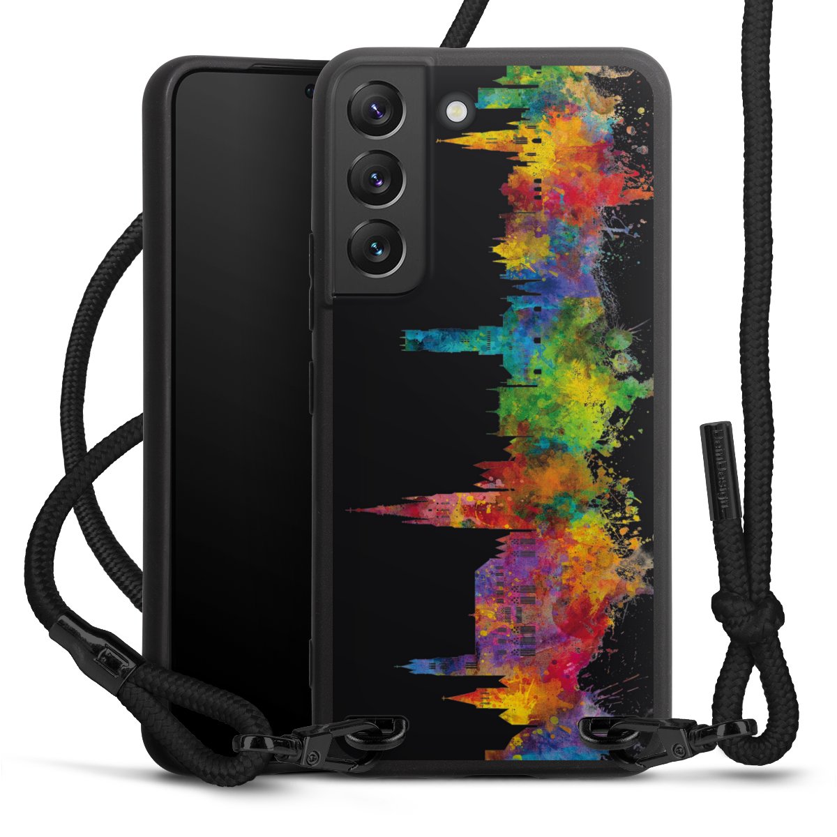 We use the solid direct print process for this phone case, which is why the print area only covers the back and the edge remains unprinted. The case to wear around your neck can be ordered unprinted, fully printed, or partially printed. For your design, either choose one of our exclusive shop motifs or get creative and create your own design, for example with photos and overlays. Design your own personal trend accessory and make an individual statement on the streets!