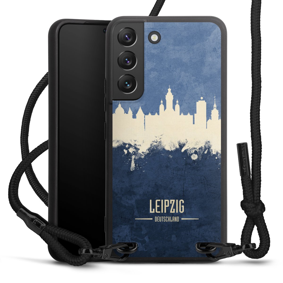 We use the solid direct print process for this phone case, which is why the print area only covers the back and the edge remains unprinted. The case to wear around your neck can be ordered unprinted, fully printed, or partially printed. For your design, either choose one of our exclusive shop motifs or get creative and create your own design, for example with photos and overlays. Design your own personal trend accessory and make an individual statement on the streets!