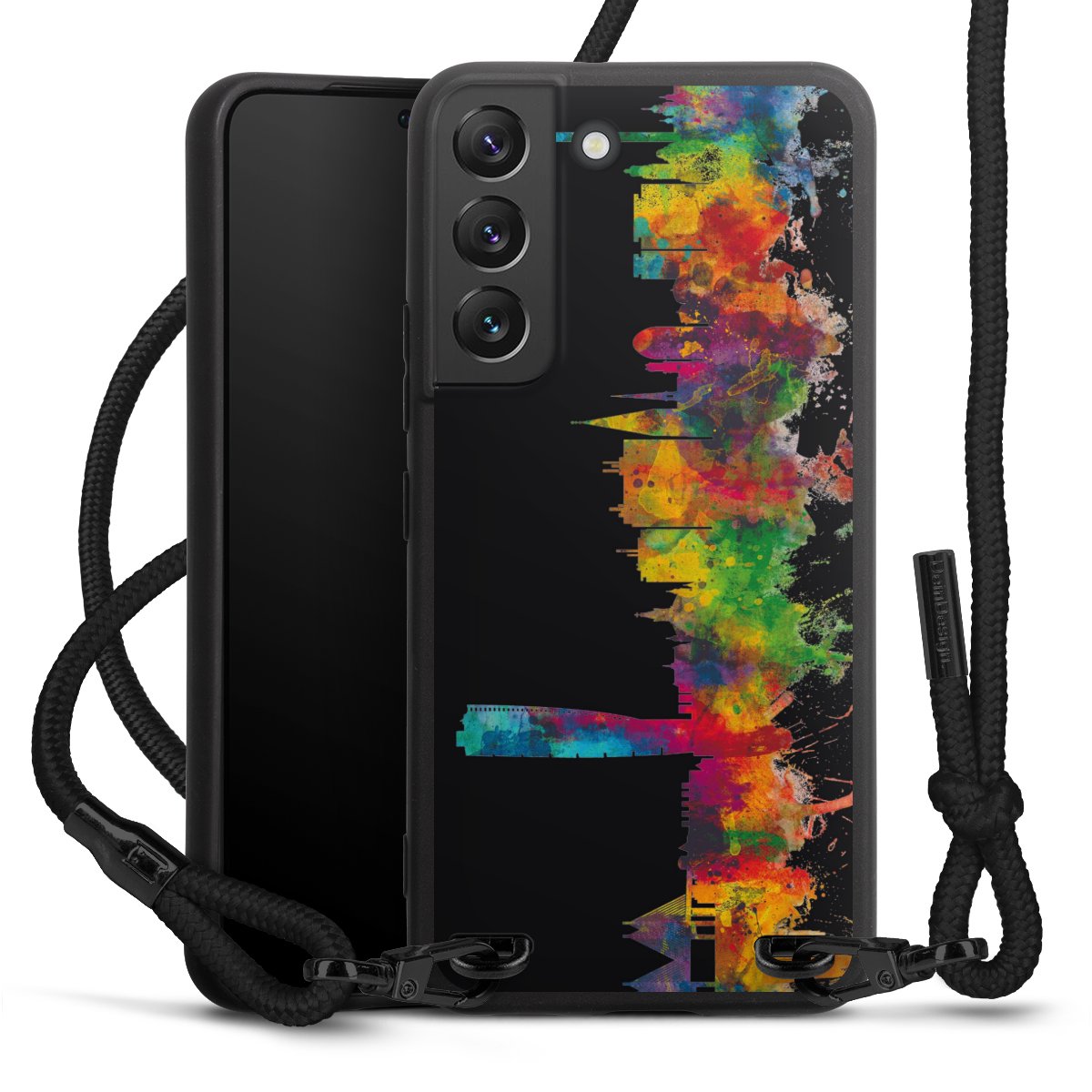 We use the solid direct print process for this phone case, which is why the print area only covers the back and the edge remains unprinted. The case to wear around your neck can be ordered unprinted, fully printed, or partially printed. For your design, either choose one of our exclusive shop motifs or get creative and create your own design, for example with photos and overlays. Design your own personal trend accessory and make an individual statement on the streets!